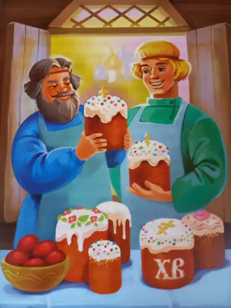 Сочная зелень и яркие цвета пасхальных яиц создавали праздничное настроение. А когда мама выпекает пасхальные куличи, во всём доме стоит сладкий аромат ванили, изюма – настоящего праздника!