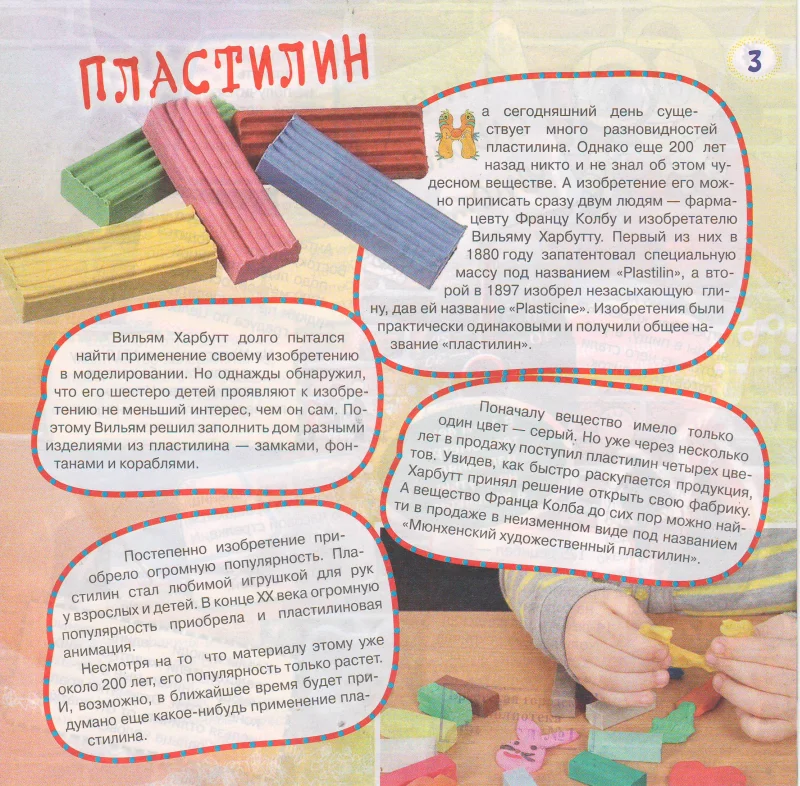 На сегодняшний день существует много разновидностей пластилина. А изобретение его можно приписать сразу двум людям – фармацевту Францу Колбу и изобретателю Вильяму Харбутту.