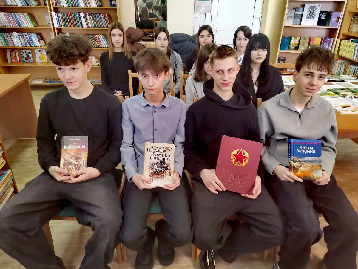 Ребята с интересом знакомились с книгами о войне в Афганистане, представленными на книжной выставке в библиотеке, среди которых произведения Н. Чергинца, А. Проханова и других авторов.