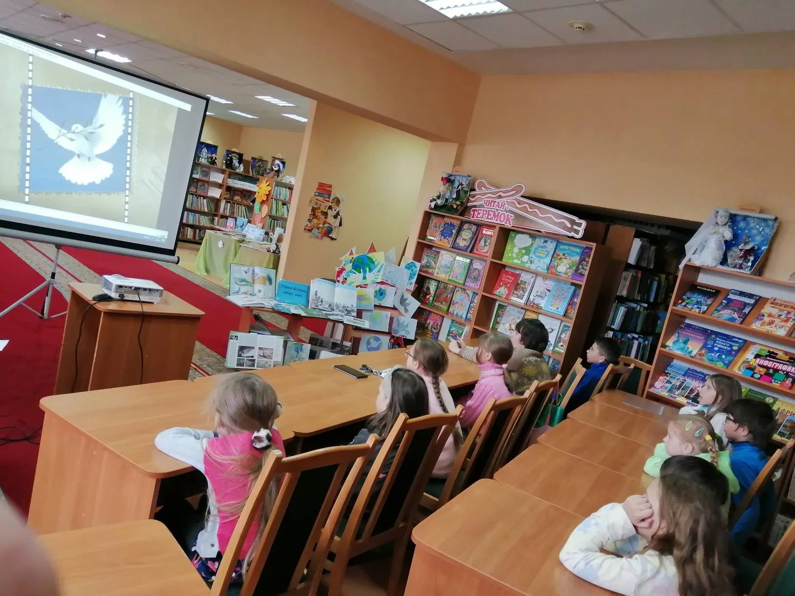 В Год мира и созидания в Городской детской библиотеке прошла акция «Голубь – птица мира», посвященная Дню Великой Победы в Великой Отечественной войне. Участниками мероприятия стали активные читатели библиотеки – мальчишки и девчонки любительского объединения «Почемучки».