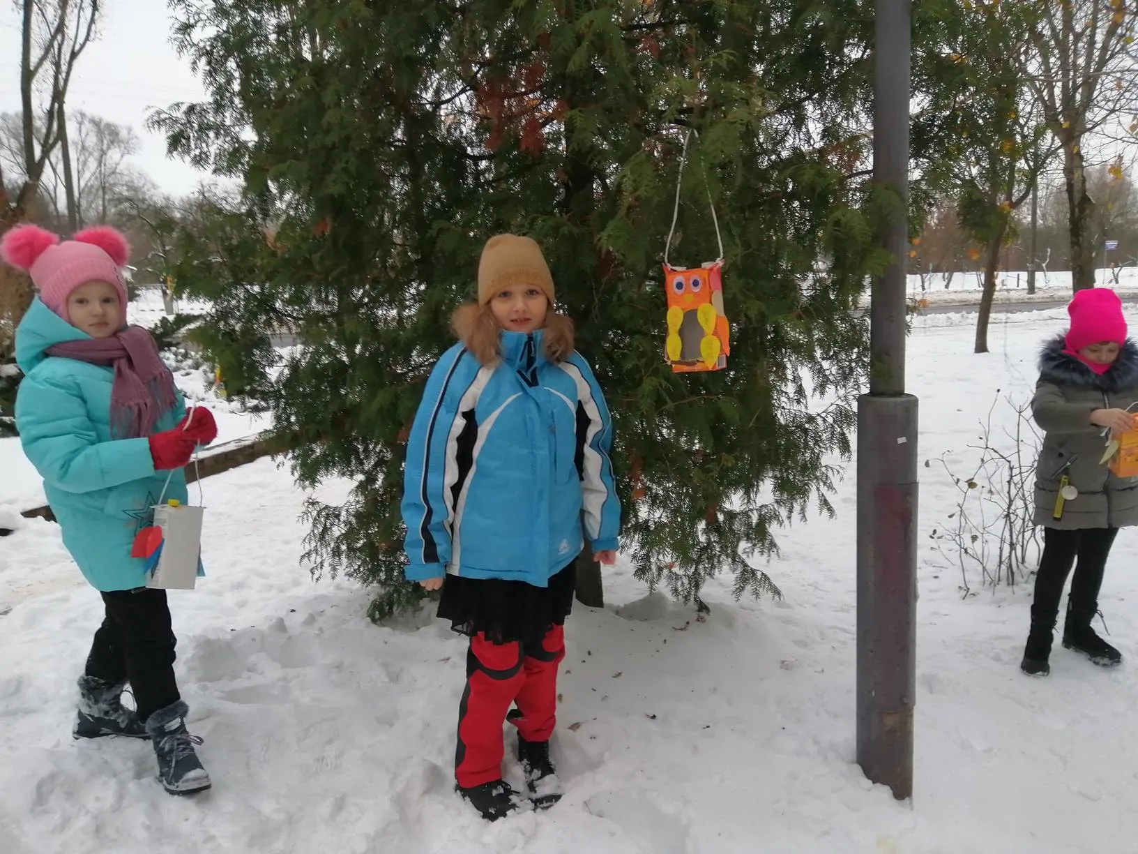Девчонки и мальчишки приложили все свои старания, чтобы смастерить кормушки из подручных материалов. Участники акции с большим энтузиазмом развешивали кормушки на ветках деревьев, щедро насыпали в них корм.