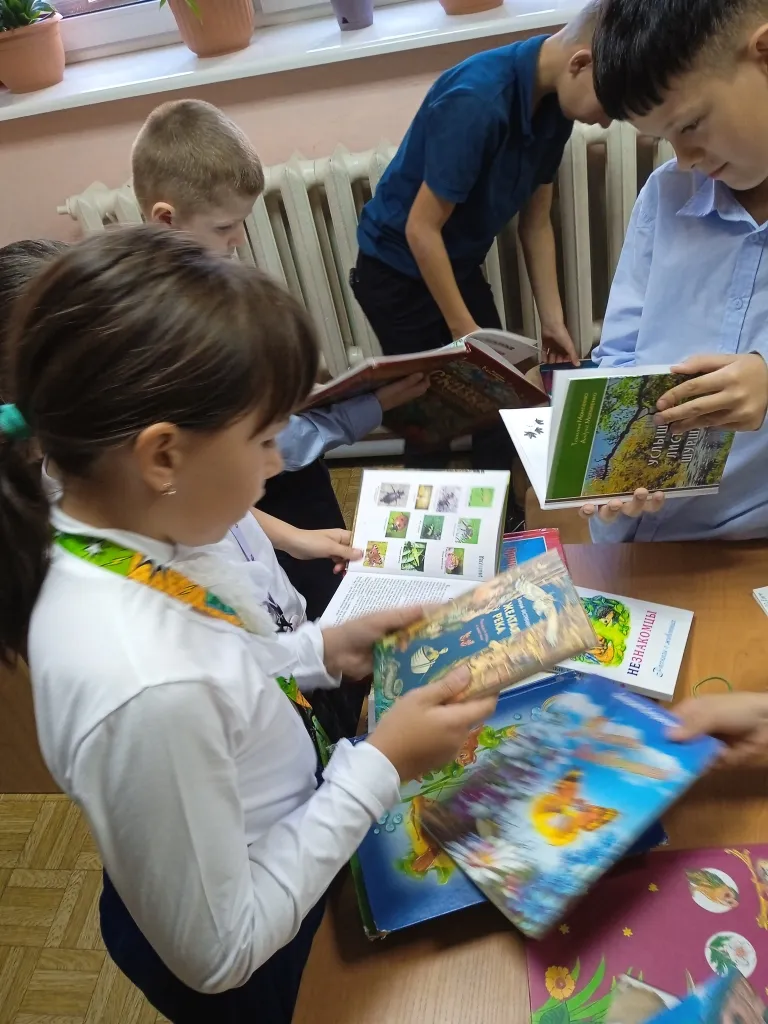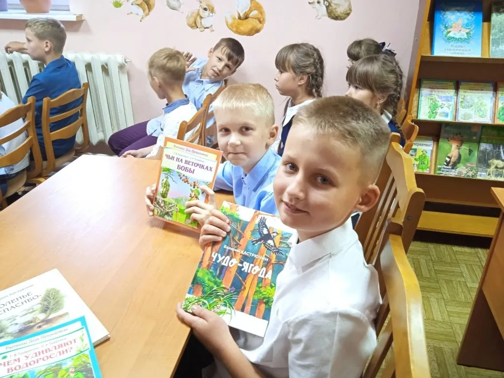 В середине сентября в детской экологической библиотеке-филиале № 11 для учащихся начальных классов СШ № 32 прошло литературное знакомство «Белорусские писатели о природе – детям». Библиотекарь познакомила ребят с книгами о природе современных белорусских писателей: В.Кастрючина, Т. Моисеевой и А. Матвеенко, В. Стома, В. Яговдика, Г. и С. Трафимовых.