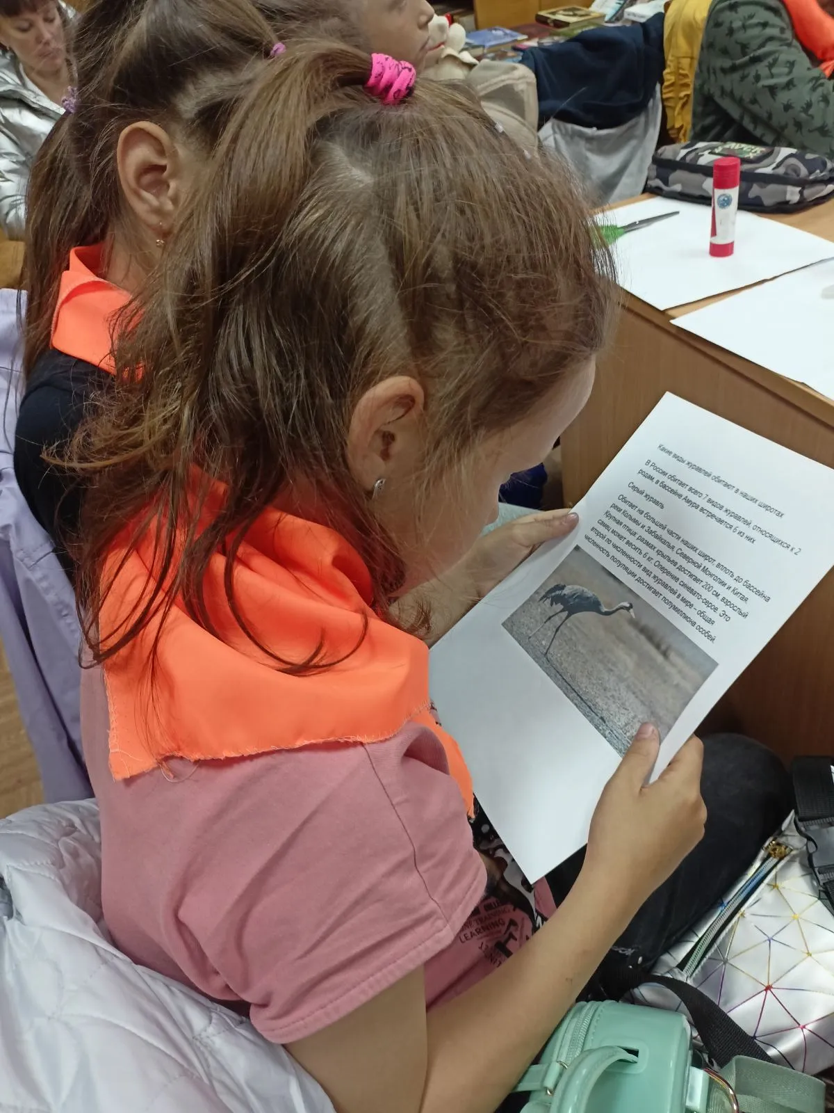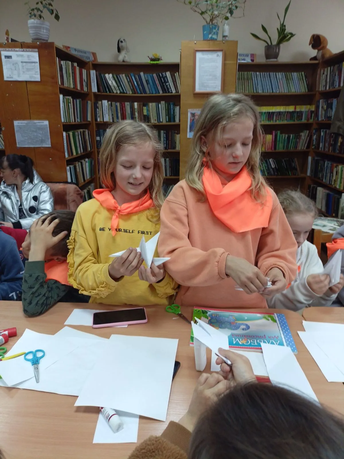 Ребята узнали много интересной информации о жизни журавлей в дикой природе. Услышали легенду об этих птицах. Школьники были потрясены рассказом библиотекаря о хиросимской девочке Садако Сасаки – жертве последствий ядерной бомбардировки. Она умерла, не успев вырезать из бумаги тысячу журавликов.