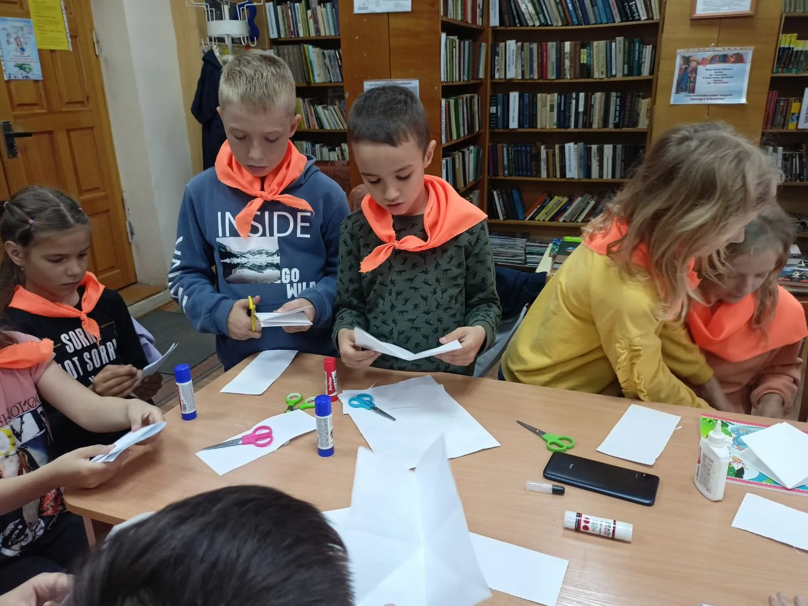 Накануне праздника в библиотеке-филиале № 9 прошло мероприятие с учащимися средней школы № 5 «Белый журавлик – вестник мира».