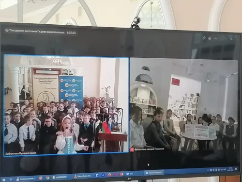 20 февраля, в преддверии Международного дня родного языка, в центральной городской библиотеке им. А.С. Пушкина состоялся международный телемост Брест–Самара «Бесценное достояние». В мероприятии приняли участие учащиеся ГУО «Средняя школа № 13 г. Бреста имени В.И. Хована» (г. Брест) и МБОУ «Школа № 13 имени Героя Советского Союза Ф. Санчирова» (г.о. Самара).