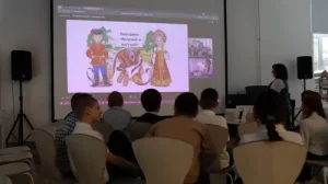 Школьники из Самары рассказали брестским ребятам, что государственным языком в Российской Федерации является русский. На нём публикуются законы, печатаются учебники и книги, издаются газеты, ведутся телепередачи. Русский язык объединяет российский народ во всем его многообразии, создает общее культурное пространство. Однако так как Россия – многонациональное государство, помимо русского языка здесь мирно живут и другие языки народов Российской Федерации. Чтобы почувствовать их мелодику и колорит, российские школьники зачитали своим белорусским друзьям несколько стихов из антологии современной детской литературы народов России — уникальной книги, раскрывающей этнокультурное разнообразие Российской Федерации.