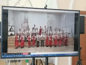 Учащиеся ГУО «Средняя школа № 13 г. Бреста имени В.И. Хована» в ответ познакомили россиян с интересными фактами о белорусском языке, его истории и отличиях от русского языка, а также зачитали стихи белорусских классиков – Максима Танка, Петруся Бровки, Пимена Панченко – посвящённые родному языку. Далее ребят ждала небольшая викторина и творческие номера – песни «Ах, Самара-городок» в исполнении ансамбля «Веселые ребята» муниципального бюджетного общеобразовательного учреждения «Лицей № 124 имени подполковника полиции Лазутина Д.А.» и «Белая Русь» в исполнении Амелии Воробьевой.