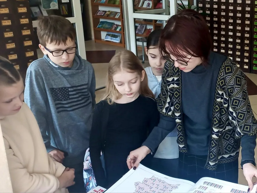 В конце марта в Центральной городской библиотеке им. А. С. Пушкина прошел библиотечный урок «Из чего состоит книга?» для четвероклассников СШ № 8 г. Бреста им. Героя Беларуси В. Н. Карвата.