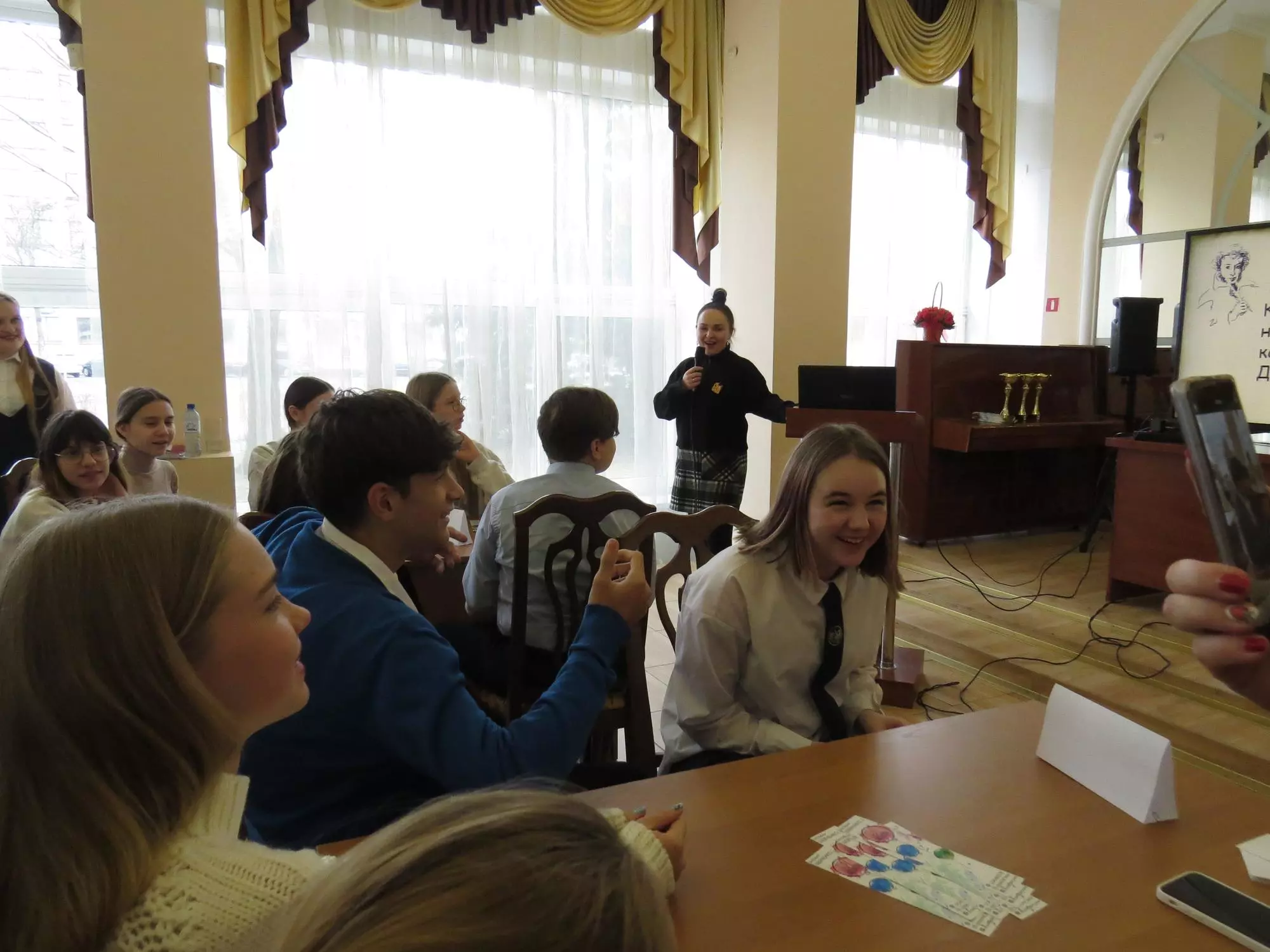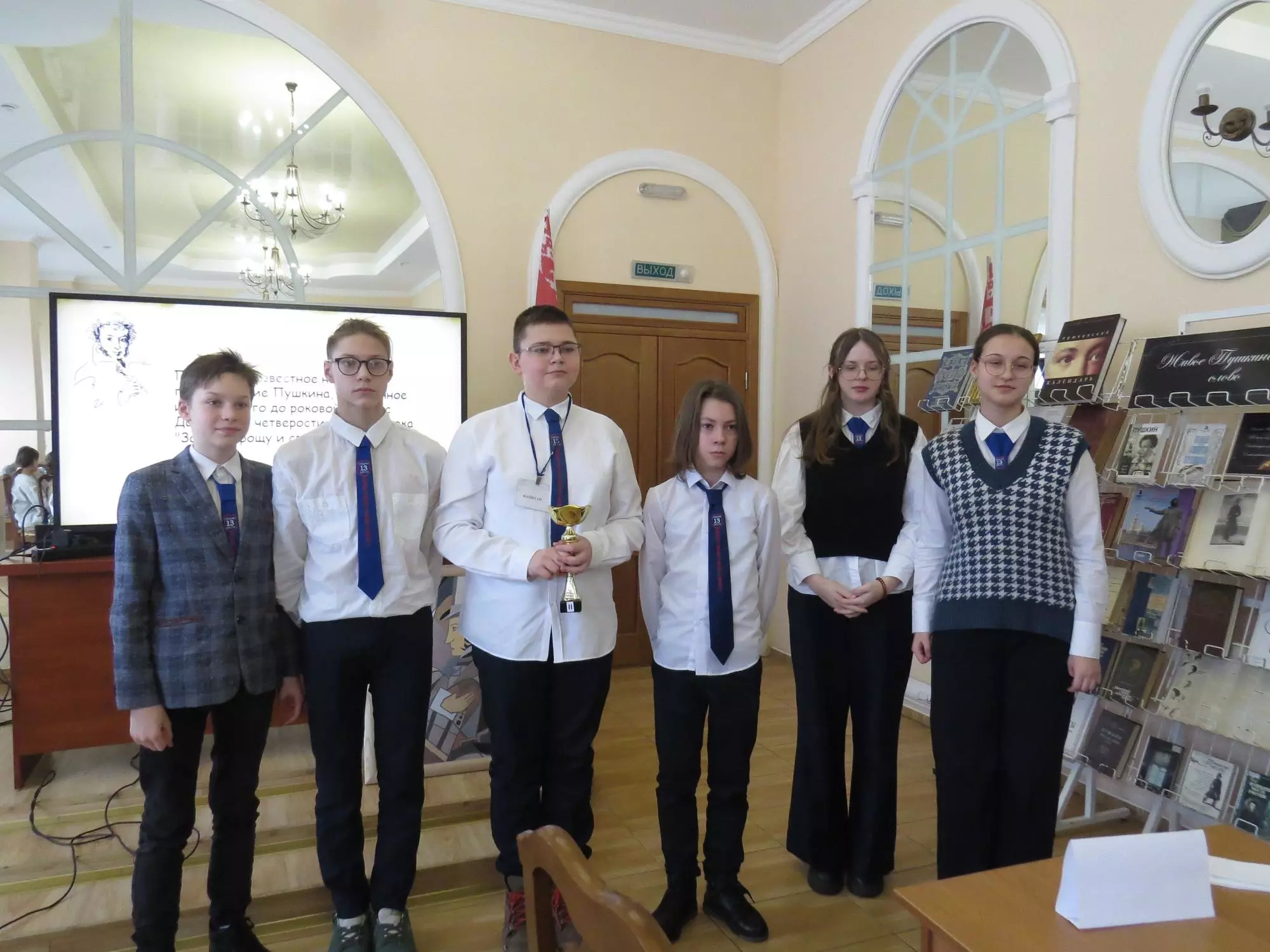 Жаркая битва развернулась между учащимися средних школ города Бреста №№ 13, 15, 20. Школьники соревновались в знаниях по трём темам: «Сказки», «Лицейский период», «Творчество Пушкина». Нешуточные страсти были на площадке. Ребята сражались и вырывали победу у конкурентов. Сколько смешных ситуаций! Путали Пушкина с Некрасовым, считали, что 40% стихотворений посвящены няне, даже «Я помню чудное мгновенье». Но и удивляли, когда назвали имение, где жил Дубровский. Когда узнали друга Александра Сергеевича по лицею, угадав его прозвище – «француз».