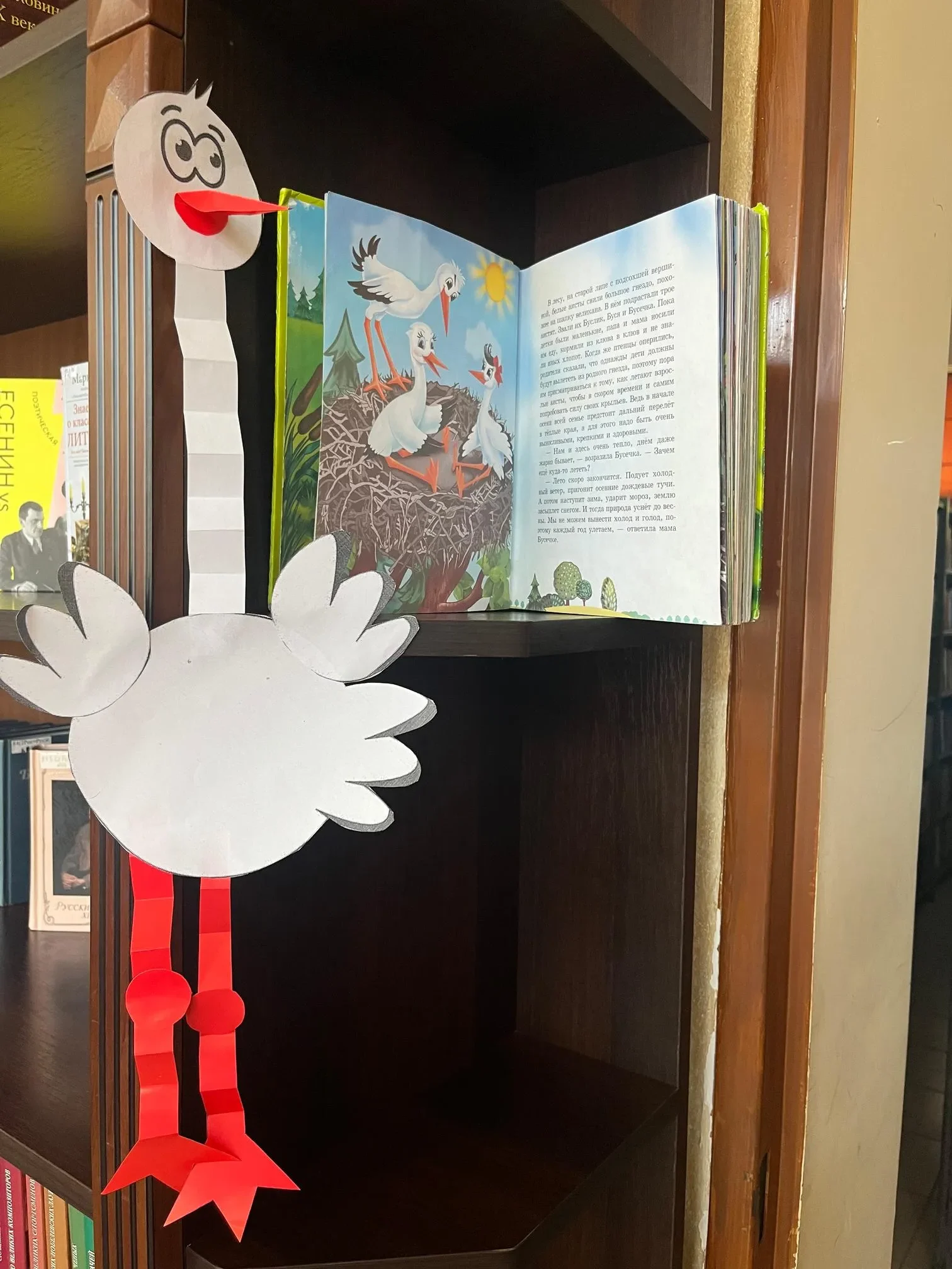 В завершение занятия каждый сделал своего озорного аиста из бумаги. Эти поделки стали добрым напоминанием о знакомстве с книгой и главным героем сказки.