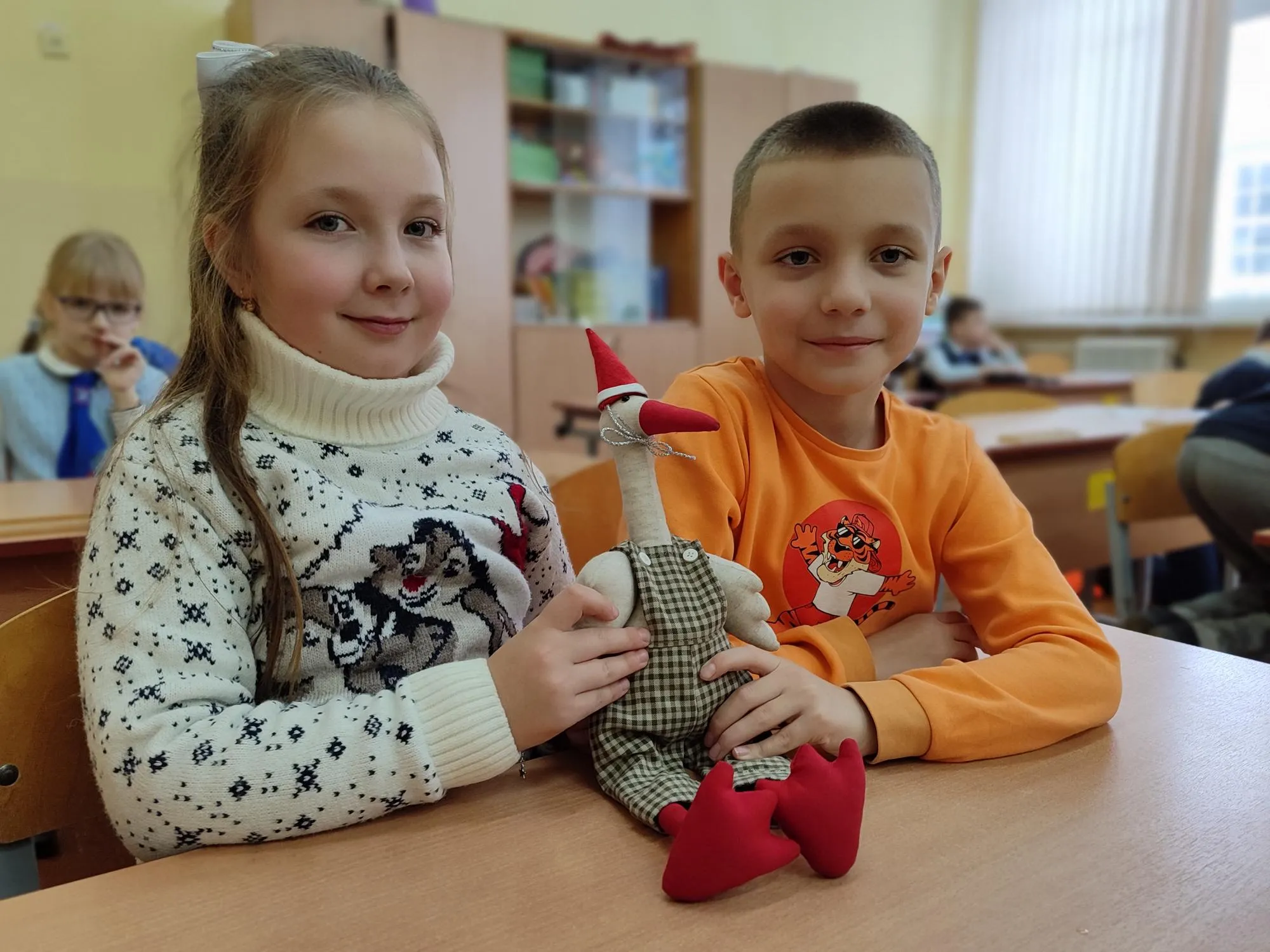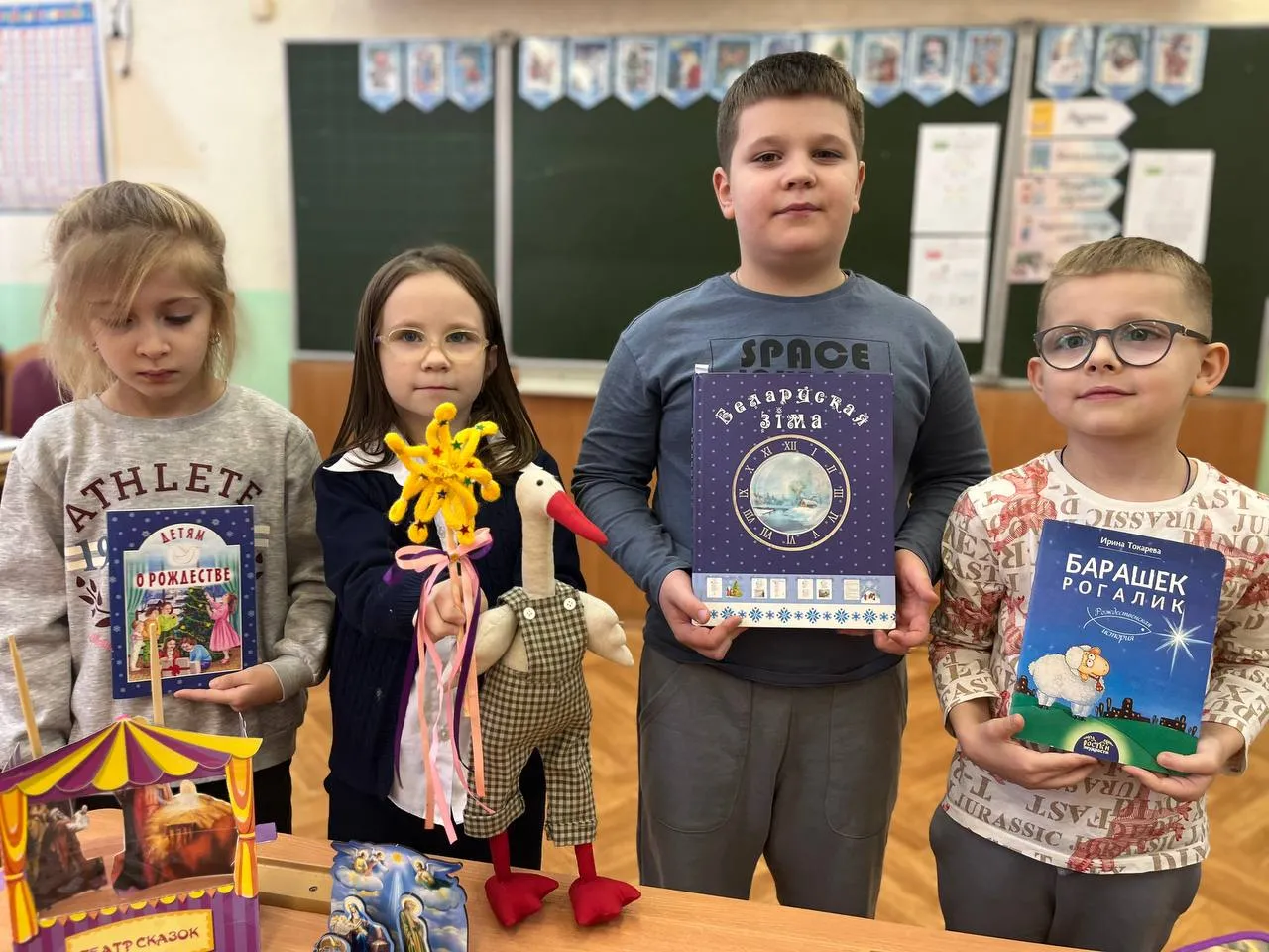 Гости предложили мальчишкам и девчонкам послушать рождественскую историю Ирины Токаревой «Барашек Рогалик», где главный герой, любознательный барашек, случайно становится свидетелем рождественских чудес: он видит младенца в яслях и волхвов, несущих дары.