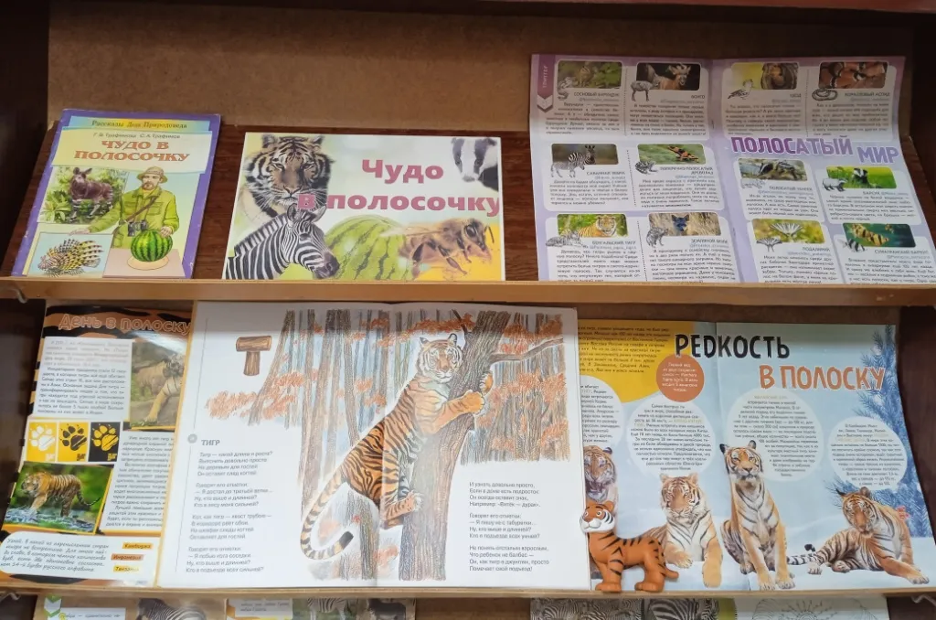 «Чудо в полосочку» – выставка с таким названием представлена в детской экологической библиотеке в преддверии Дня тигра (29 июля) и Дня арбуза (3 августа). Посвящена она полосатым представителям мира растений и животных.