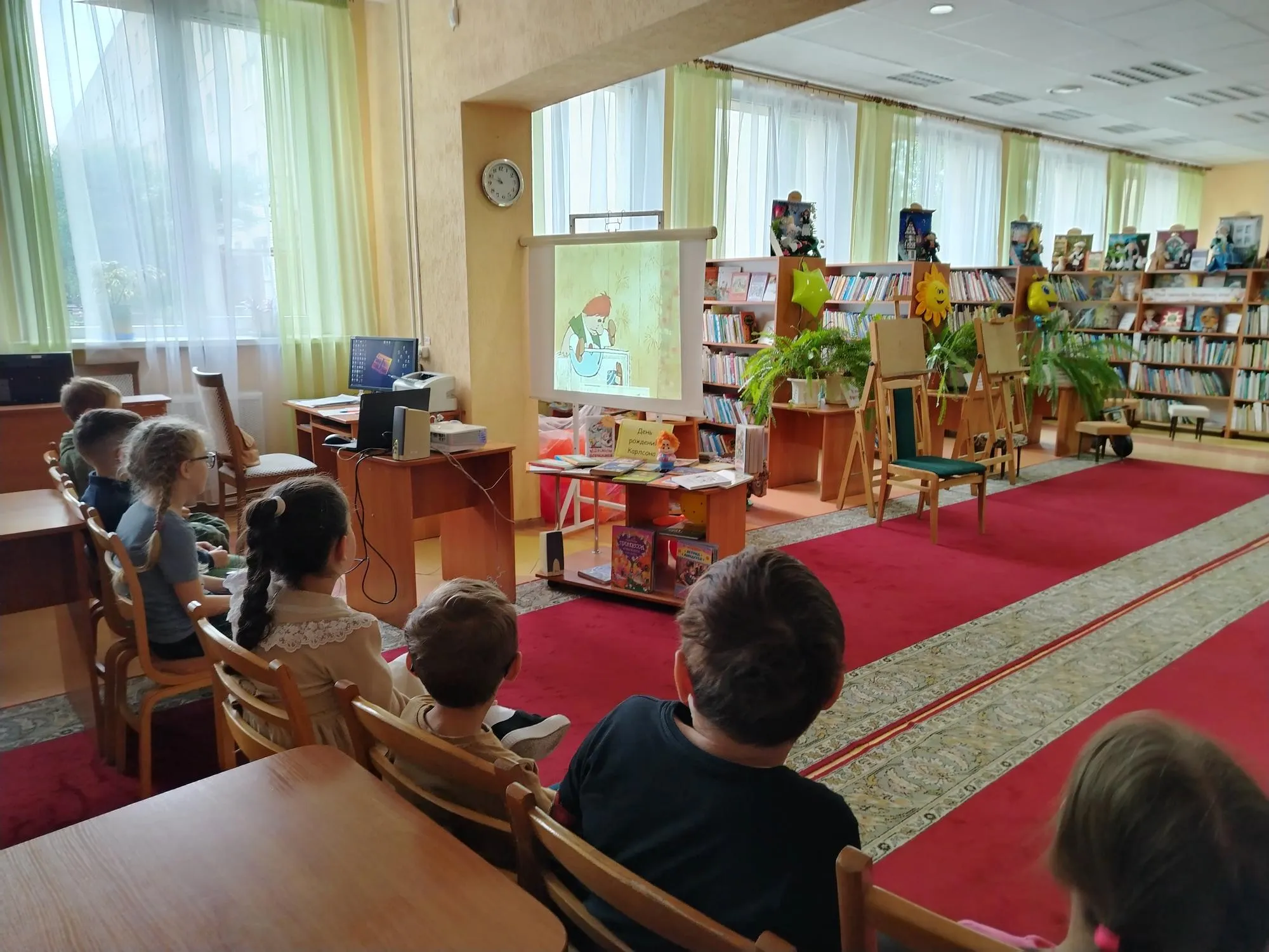 Городская детская библиотека в честь дня рождения любимого персонажа устроила настоящий праздник! Гостей мероприятия ожидали веселые игры и конкурсы, забавы и шалости. Конечно же, не обошлось без просмотра забавных фрагментов из любимого мультфильма, а также интересных фактов о писательнице, подарившей миру любимого Карлсона.