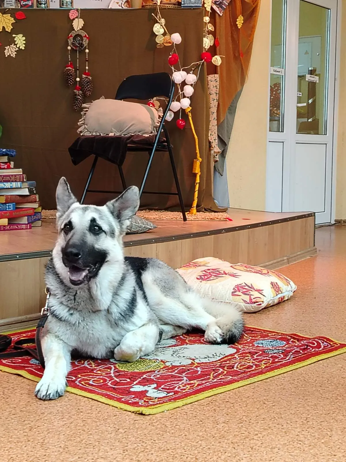 Четвероногий гость оказался очень милой, доброй и ласковой собакой. Если у вас есть огромное желание пообщаться с милейшей собакой, приходите в детскую библиотеку на «СоЧитайку» и обнимите Графа. Он этому будет очень рад!
