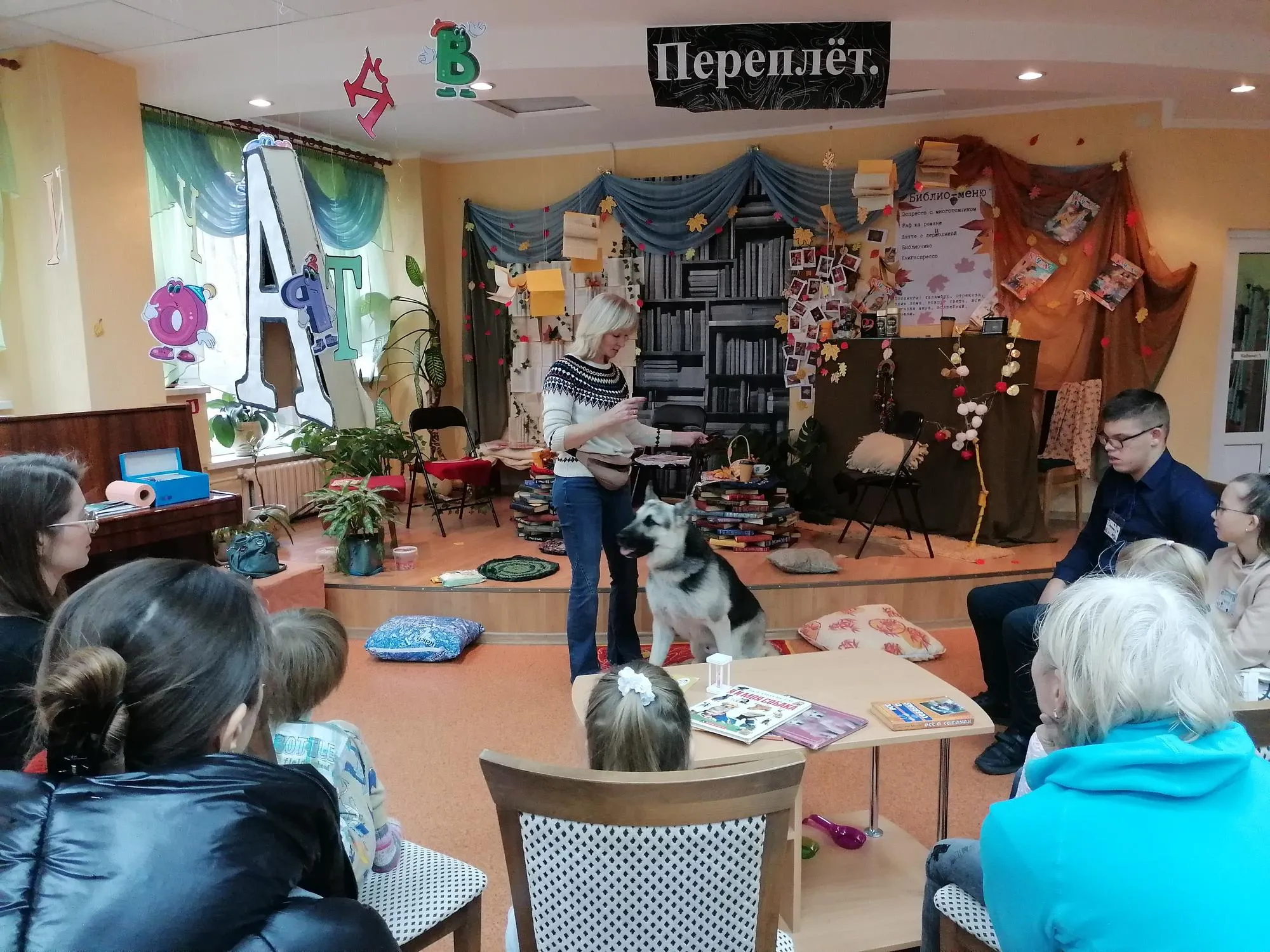 Необычная встреча, наполненная добротой, трепетом и детским восторгом, прошла на днях в Городской детской библиотеке. На занятие кружка развивающего чтения «СоЧитайка» заглянул вместе со своей хозяйкой пёс Граф.