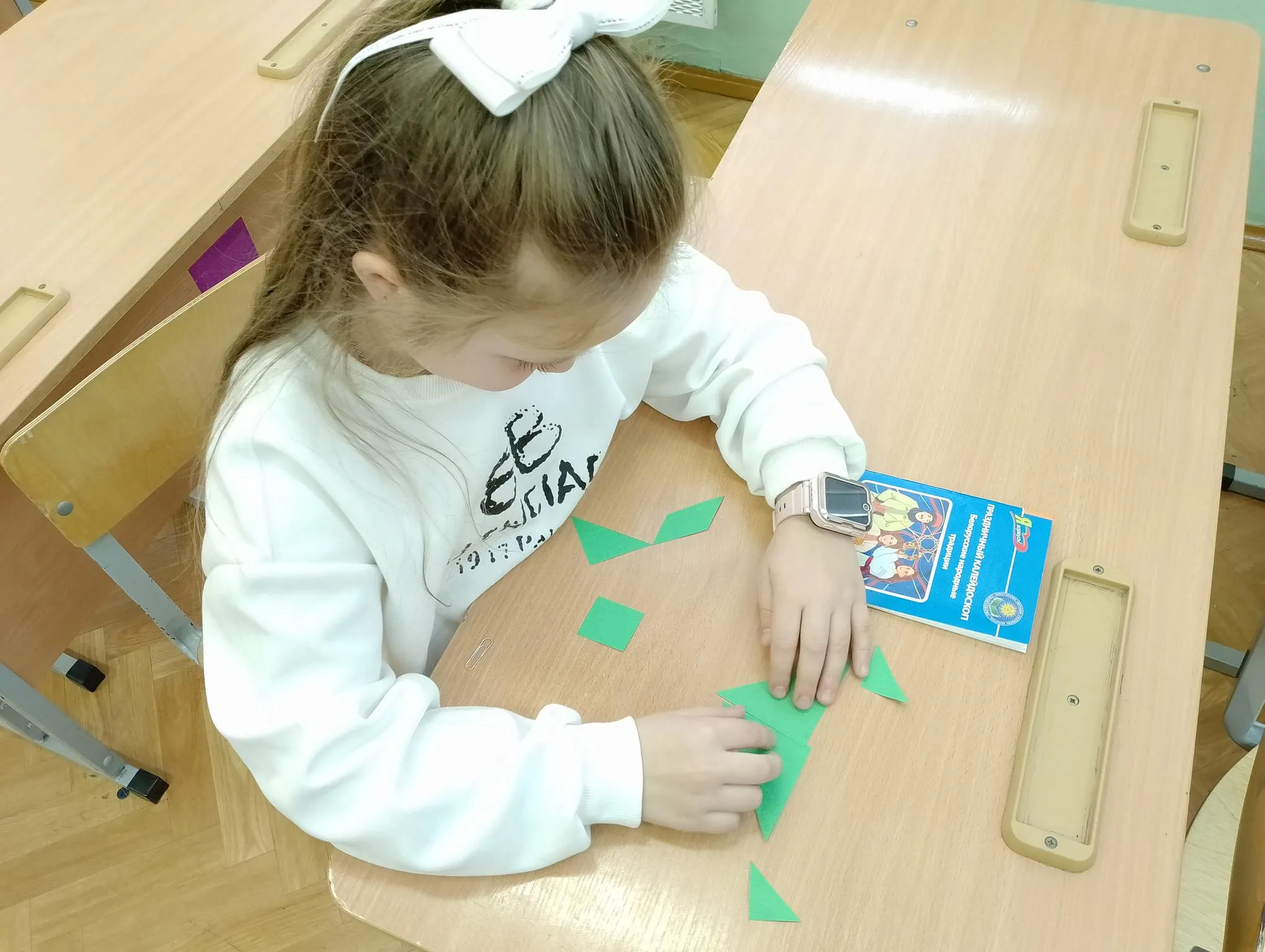 Библиотекари познакомили своих слушателей с традициями и историей праздника, объяснили, почему Сороки называют праздником птиц, сыграли с ребятами в белорусскую народную игру «Гуси летят». Учащиеся с интересом отгадывали загадки, заканчивали пословицы и поговорки, объясняли значение устойчивых выражений. Заданием со звёздочкой стало решение логической китайской головоломки «танграм»: из семи плоских фигур ребятам было предложено составить образ символа праздника – птицы. При этом необходимо было соблюсти два правила: использовать все семь фигурок и не накладывать их одна на другую.