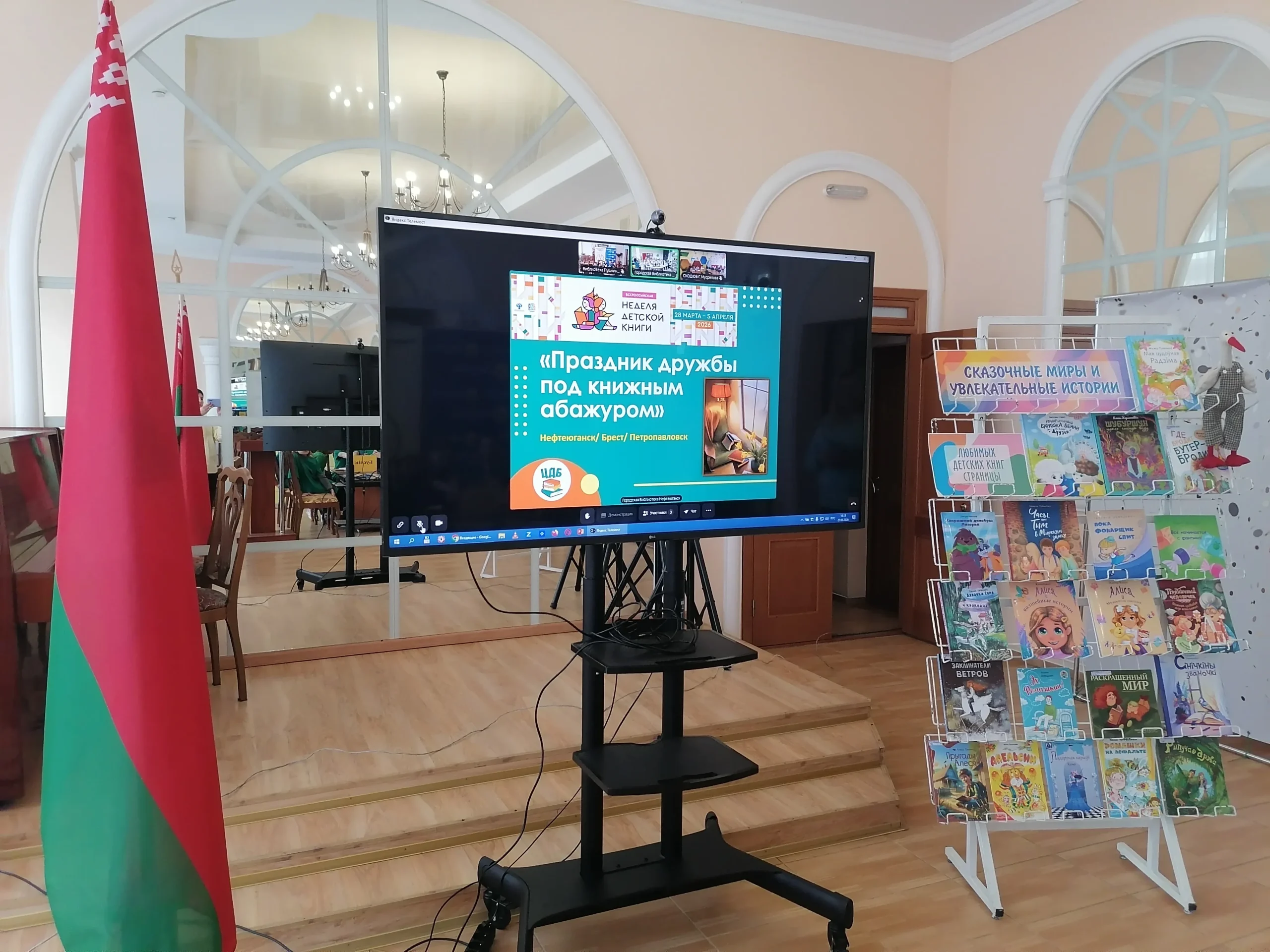 «Праздник дружбы под книжным абажуром» – под таким названием 27 марта в центральной городской библиотеке им. А.С.Пушкина состоялась международная онлайн-встреча в рамках Недели детской и юношеской книги, посвященной Дню единения народов Беларуси и России. В мероприятии приняли участие представители города Бреста (Республика Беларусь), города Нефтеюганска (Российская Федерация) и города Петропавловска (Республика Казахстан).
