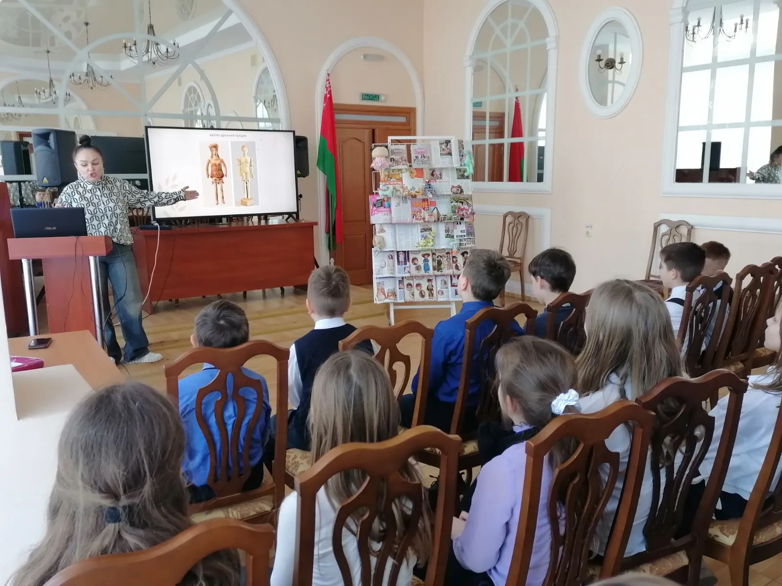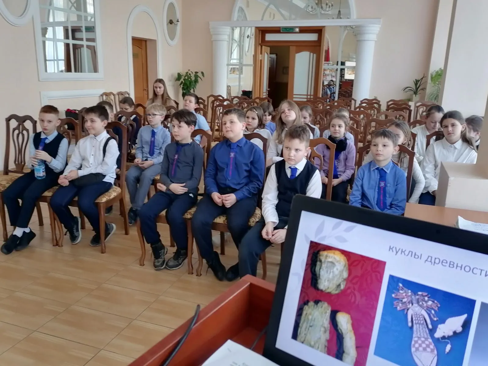 С помощью мультимедийной презентации раскрыли секреты кукол 16, 17, 19 века. Мальчишки и девчонки с удовольствием отвечали на вопросы и с нескрываемым интересом задавали свои.