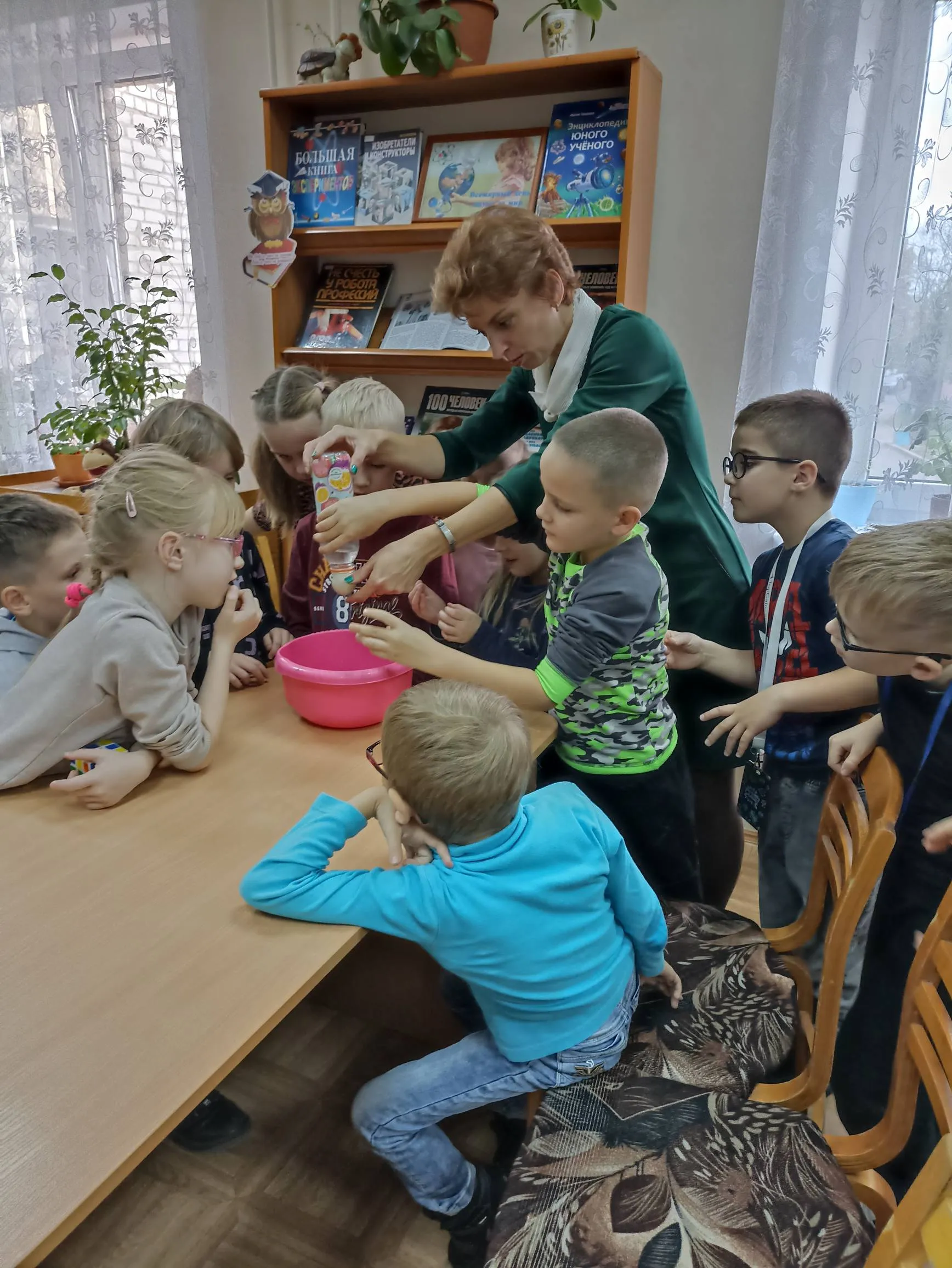 Открывая для себя новую информацию, школьники с удовольствием принимали участие в опытах на смекалку, проверяли глазомер и объём лёгких, отвечали на вопросы викторины «Научные открытия и изобретения». И ещё много-много активностей приготовили библиотекари для своих гостей.