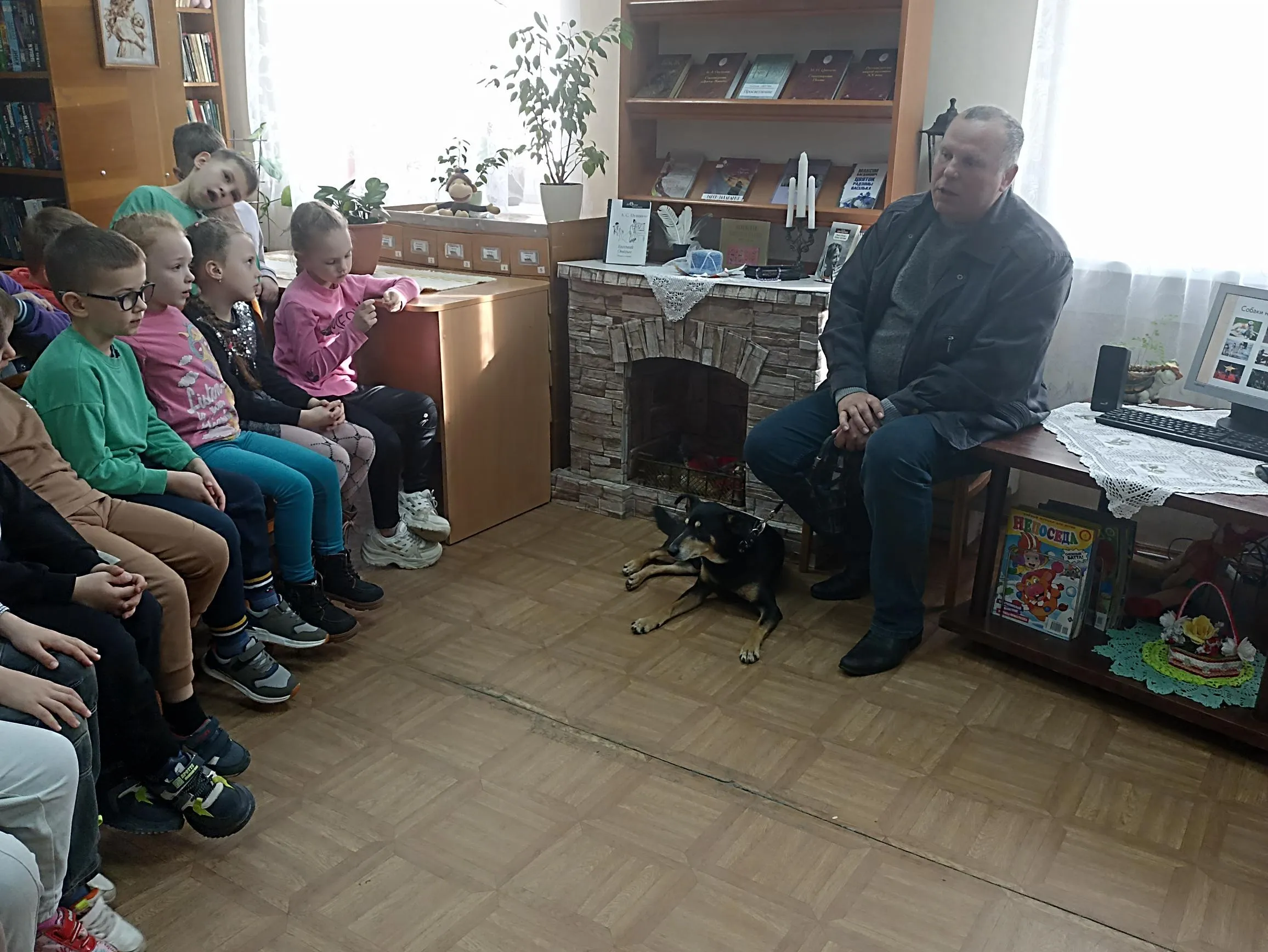 К Всемирному дню служебных собак в библиотеке-филиале № 9 прошла встреча под названием «Собаки на службе». Участниками мероприятия были ребята старшей группы детского сада № 35 и инструктор службы собак, старший прапорщик в отставке Руслан Вячеславович Пшеничный со своим верным четвероногим напарником Агатом.