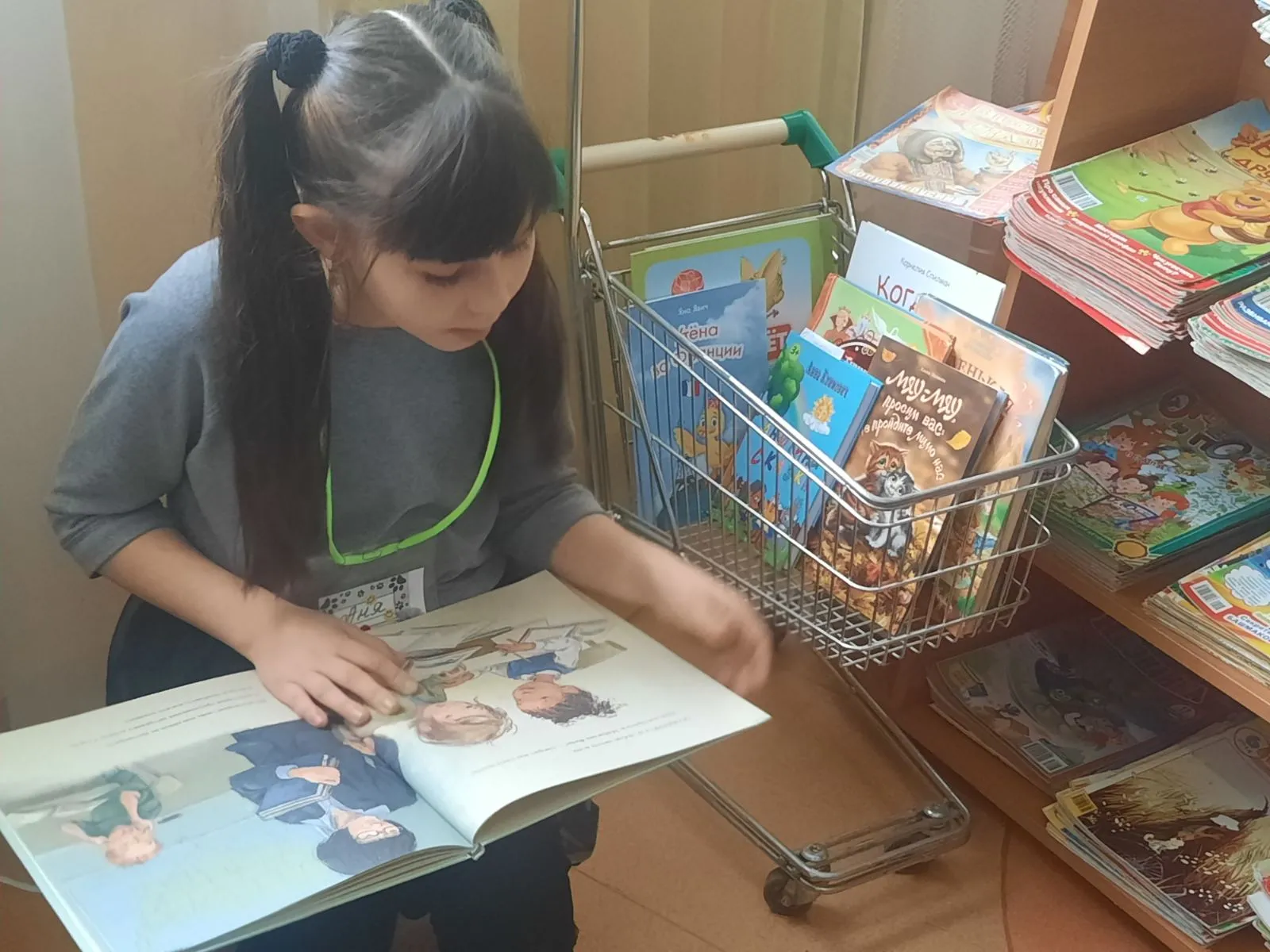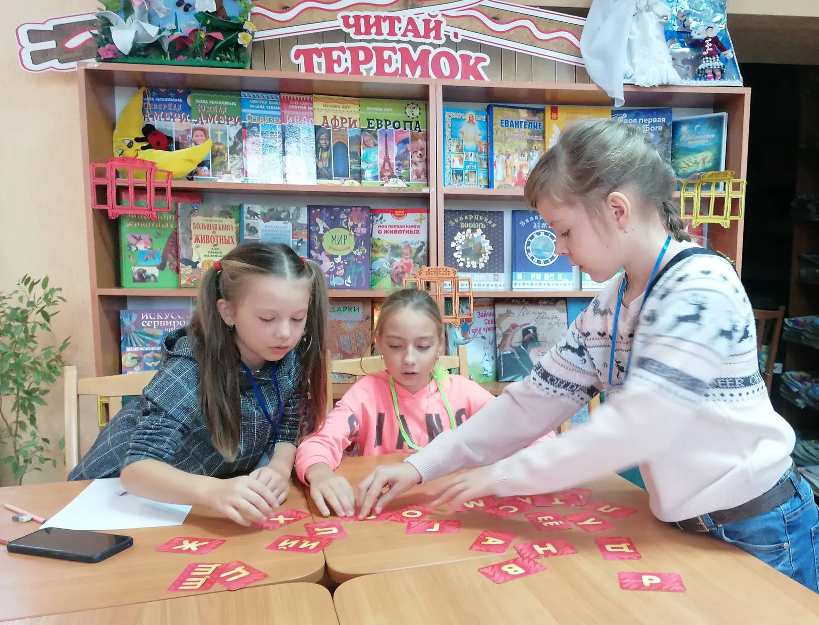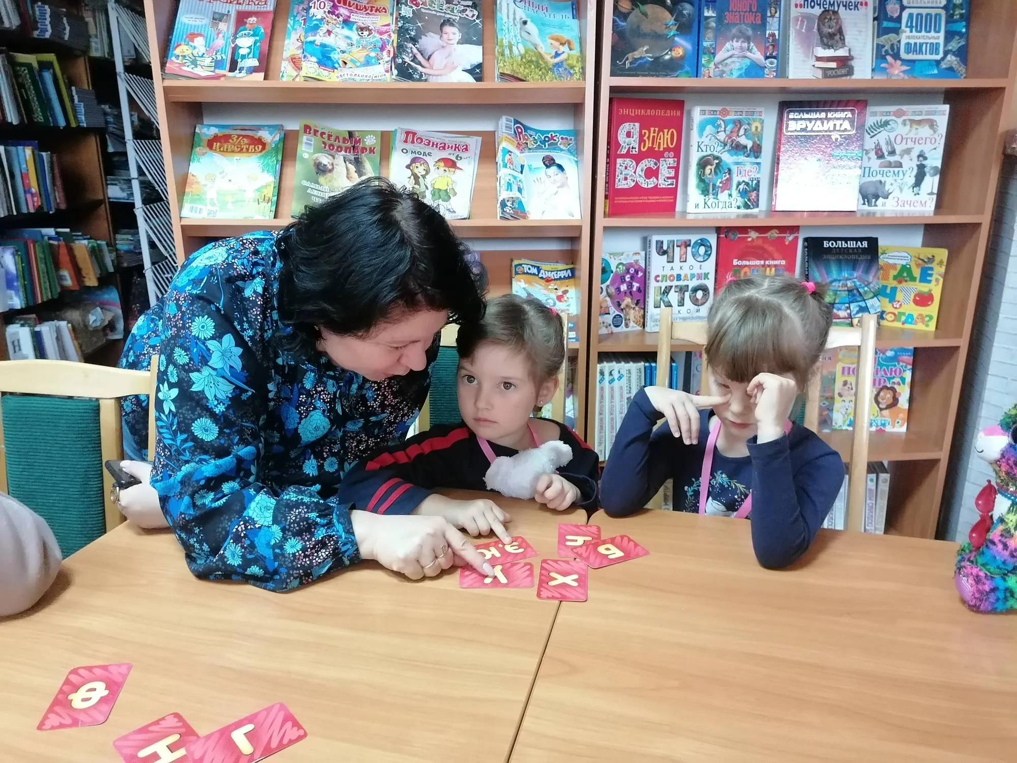 Но и ребята, ожидающие своей очереди чтения, тоже не грустят. Например, когда Фрося слушала книгу Лизы Папп «Мэйделин Финн и библиотечная собака», школьники повторяли правила поведения в библиотеке и общения с собакой, вспоминали все известные им породы, учились рисовать их, и при помощи игры «Весёлая азбука», проверяли свою интуицию.