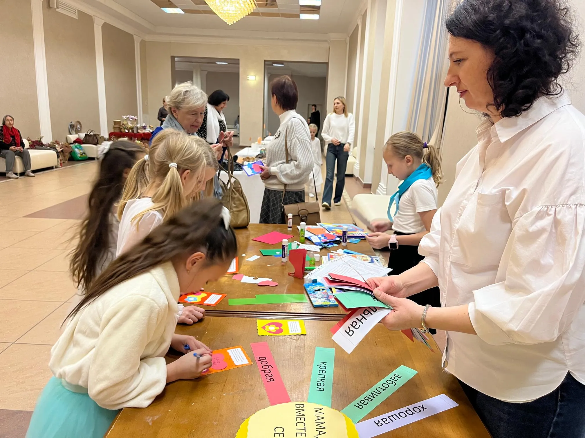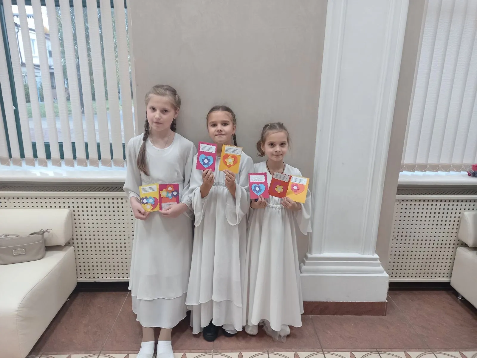 Воспитанникам воскресной школы было предложено изготовить поздравительные открытки для любимых мам. Маленькие мастера с удовольствием принялись за работу, вкладывая в свои творения любовь и благодарность маме. Прямо на празднике ребята подарили открытки своим мамам.