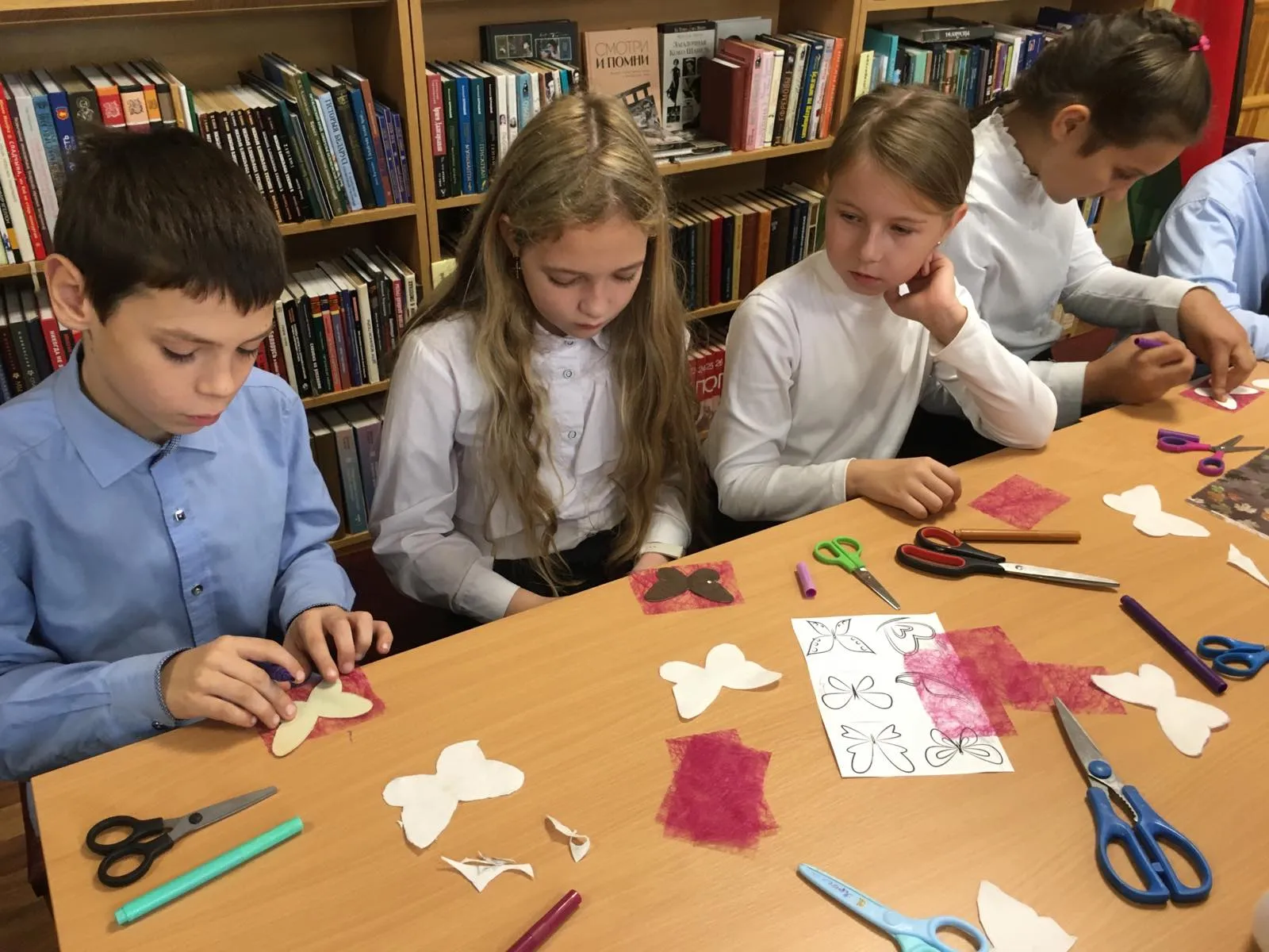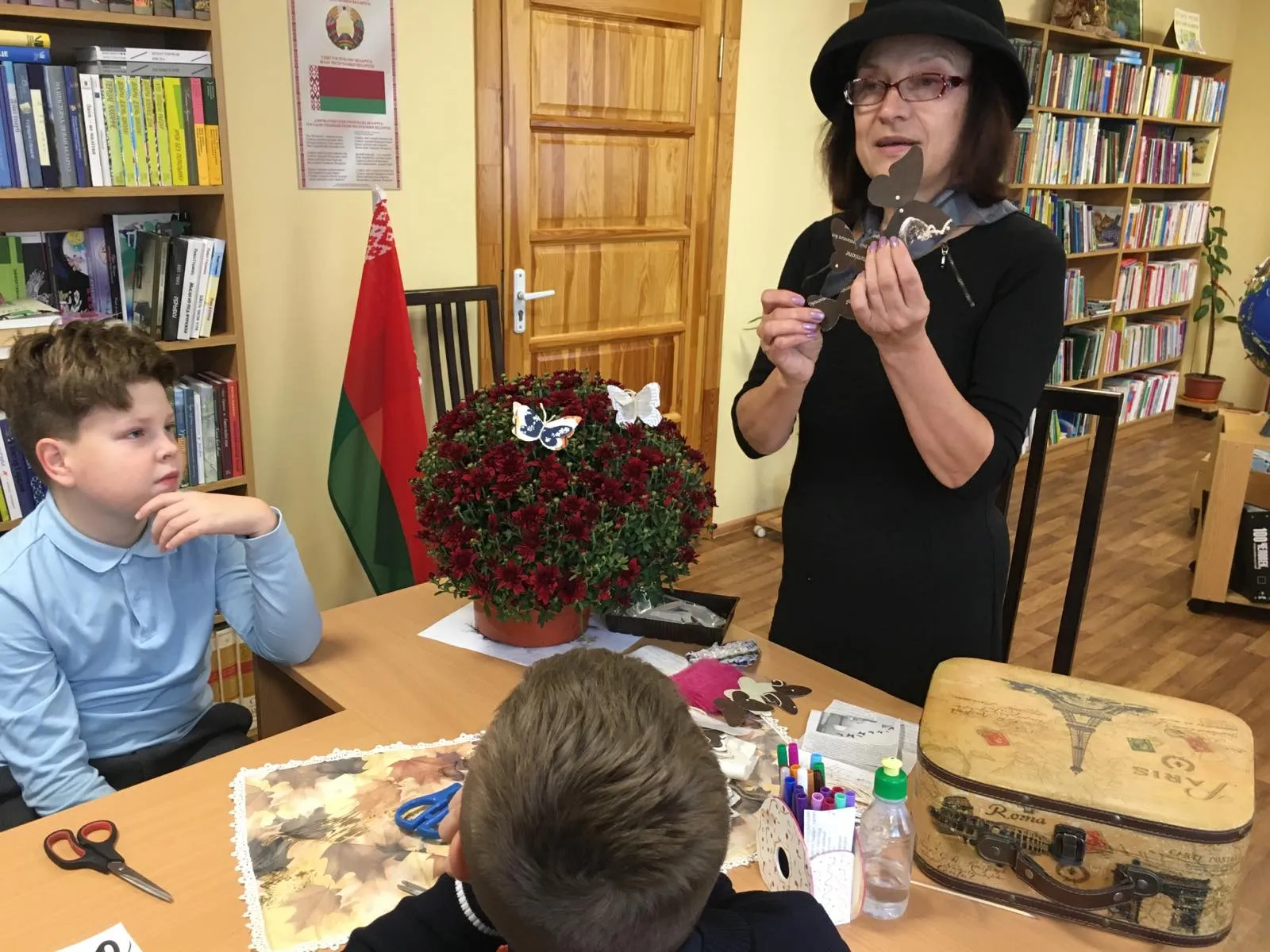 В Покров Пресвятой Богородицы – большой православный праздник, отмечаемый 14 октября, – в библиотеке-филиале № 2 прошёл мастер-класс для учащихся 4-го класса средней школы № 33. Руководила творческим процессом член белорусского союза мастеров народного творчества Галина Зигмундовна Масюк. Как воспоминание о лете, детям было предложено сделать в подарок мамам прекрасных ярких бабочек.