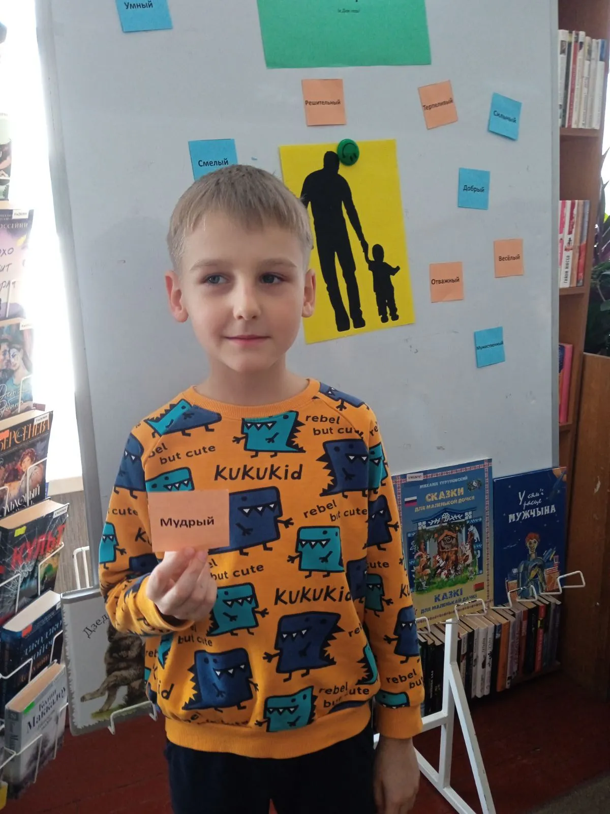 Библиотекарь познакомила ребят с историей праздника, объяснила значение слов «отец» и «Отечество», имеющих один корень. Отец – это главный мужчина в жизни каждого, это опора семьи, это хозяин и защитник.