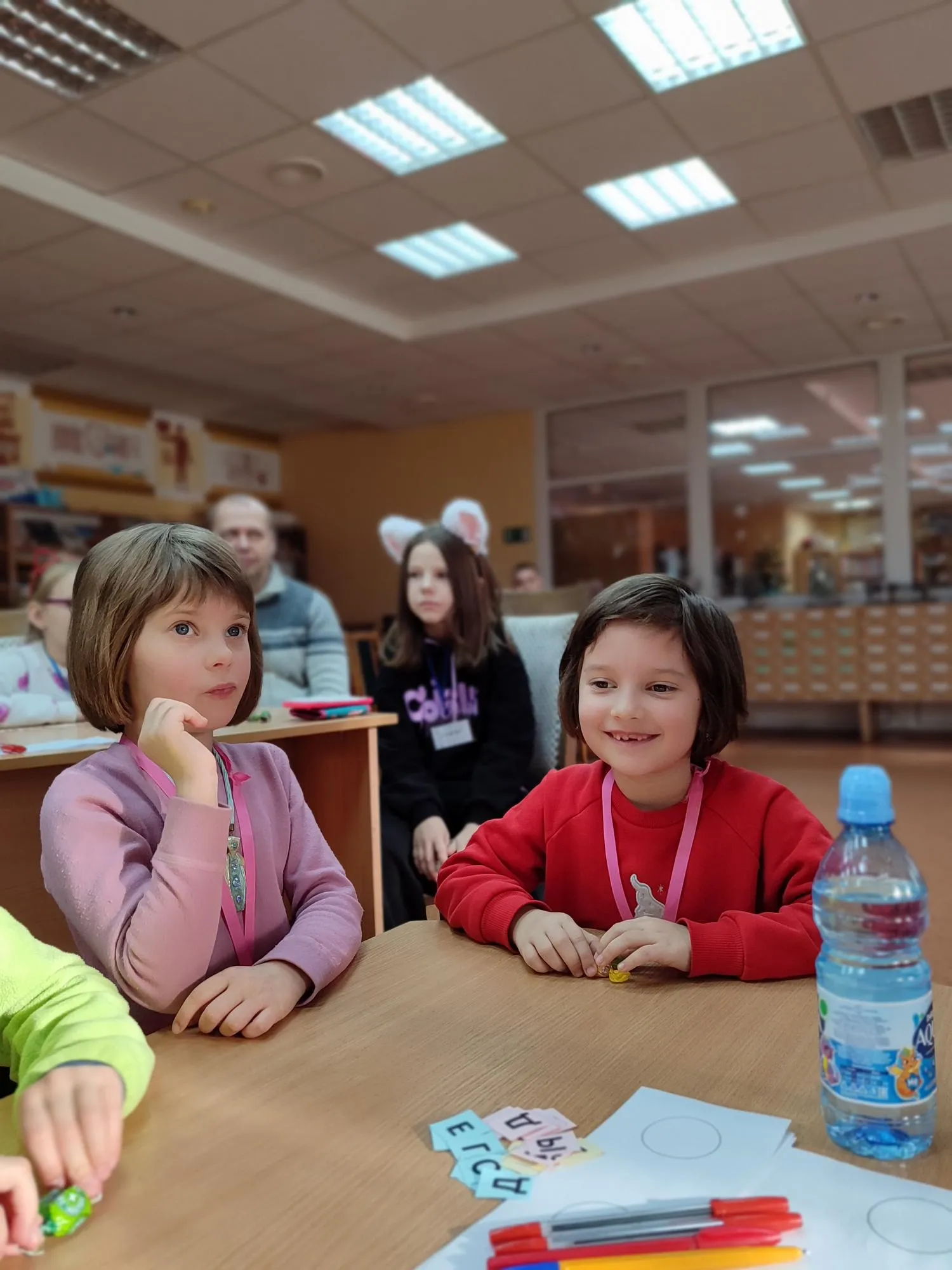 Мальчишкам и девчонкам, а также их родителям был предложен различный развивающий интерактив. Например, в игре на внимание «Узнай героя сказки» юные читатели удивили библиотекарей своим прекрасным знанием детской литературы. Ребятам не составило труда разгадать сказочные изобретения в упражнении для развития скорочтения и для тренировки мозга «Буквомикс». Пришлось, правда, потрудиться в игре «Одна буква». Родители выбрали по одной букве из алфавита и вместе с ребятами принялись за увлекательное творчество: придумывать связный рассказ или сказку, в которой все слова только на одну выбранную букву. Эта весёлая и полезная игра помогла участникам расширить словарный запас и кругозор.
