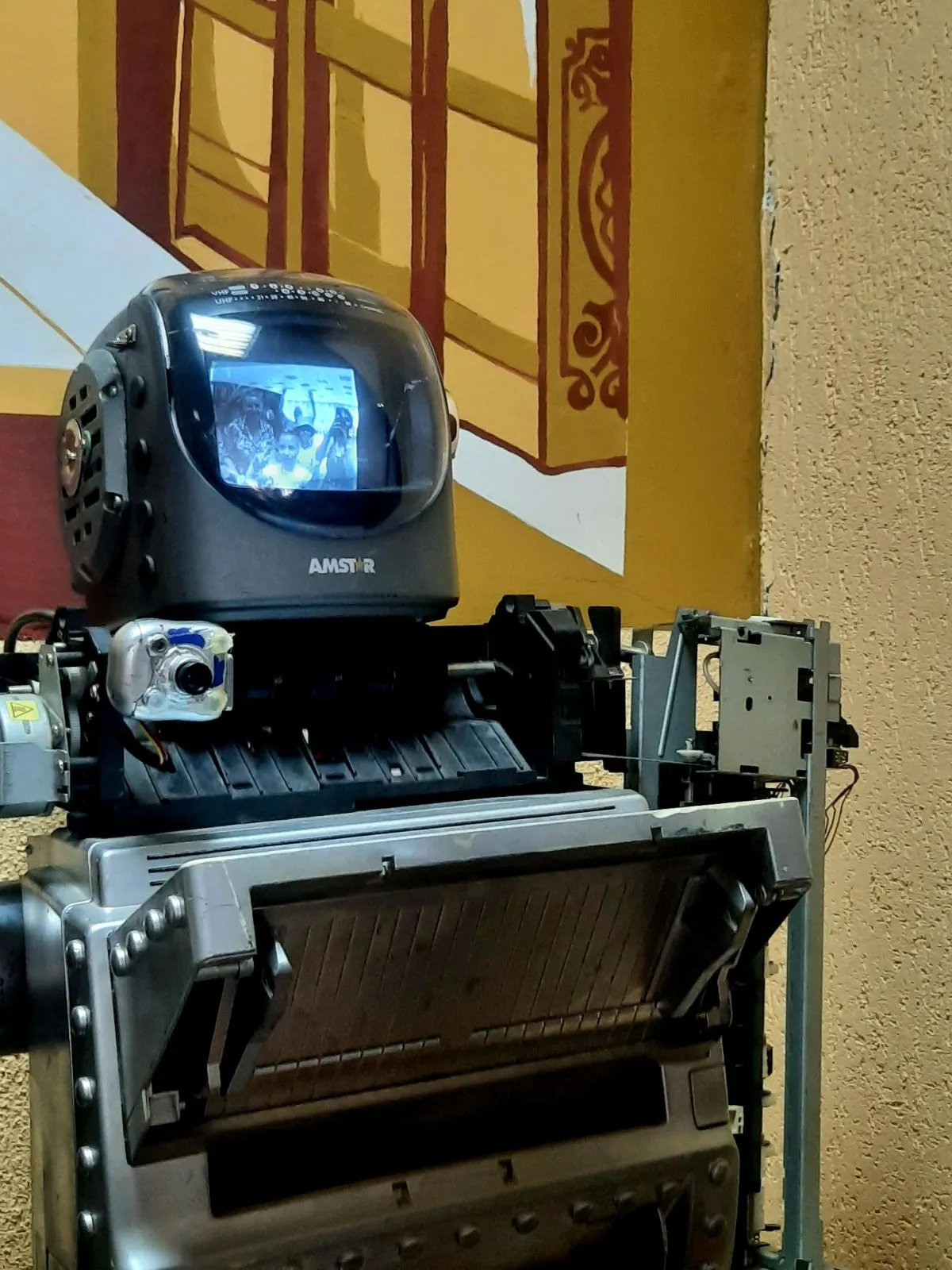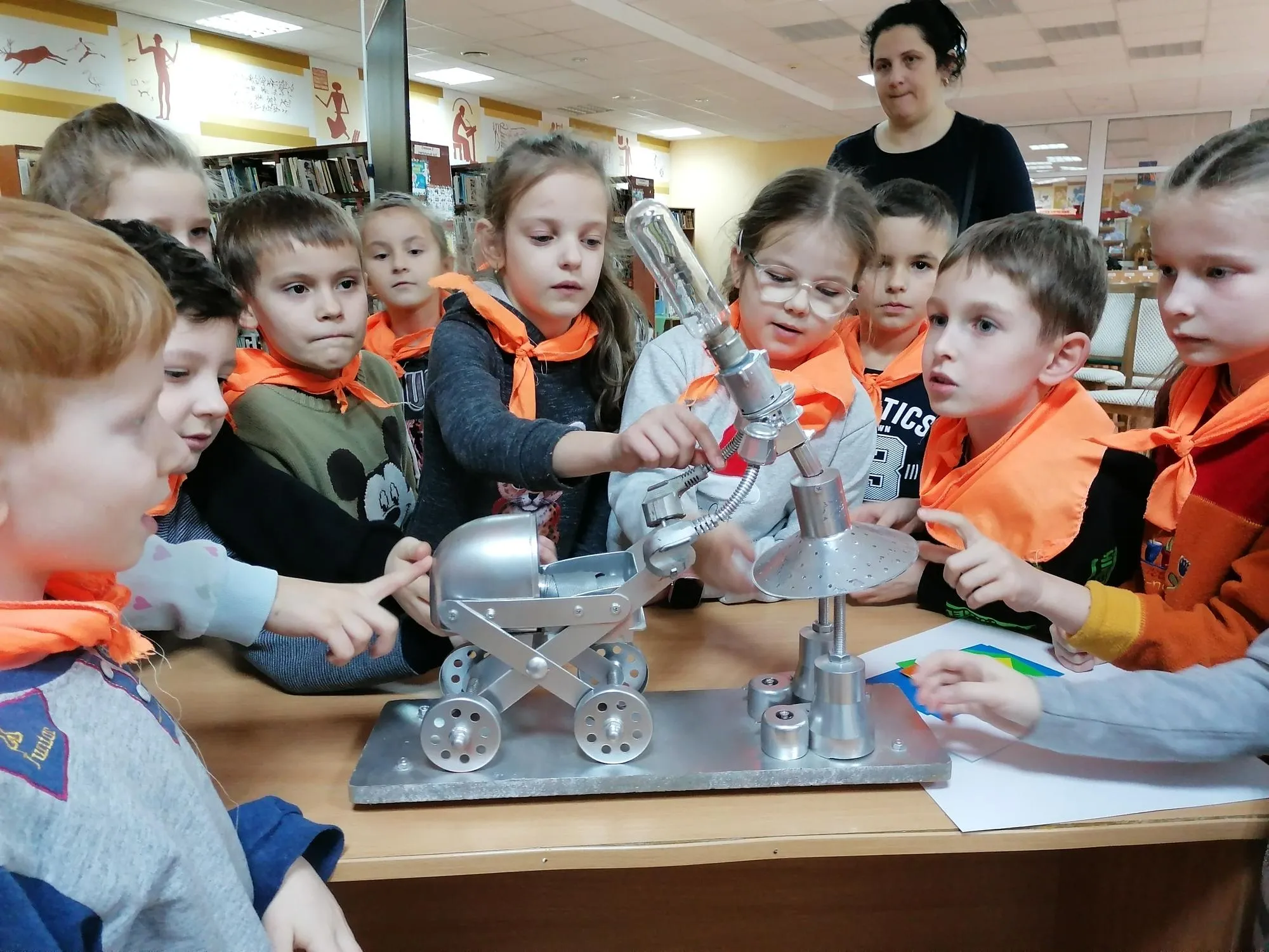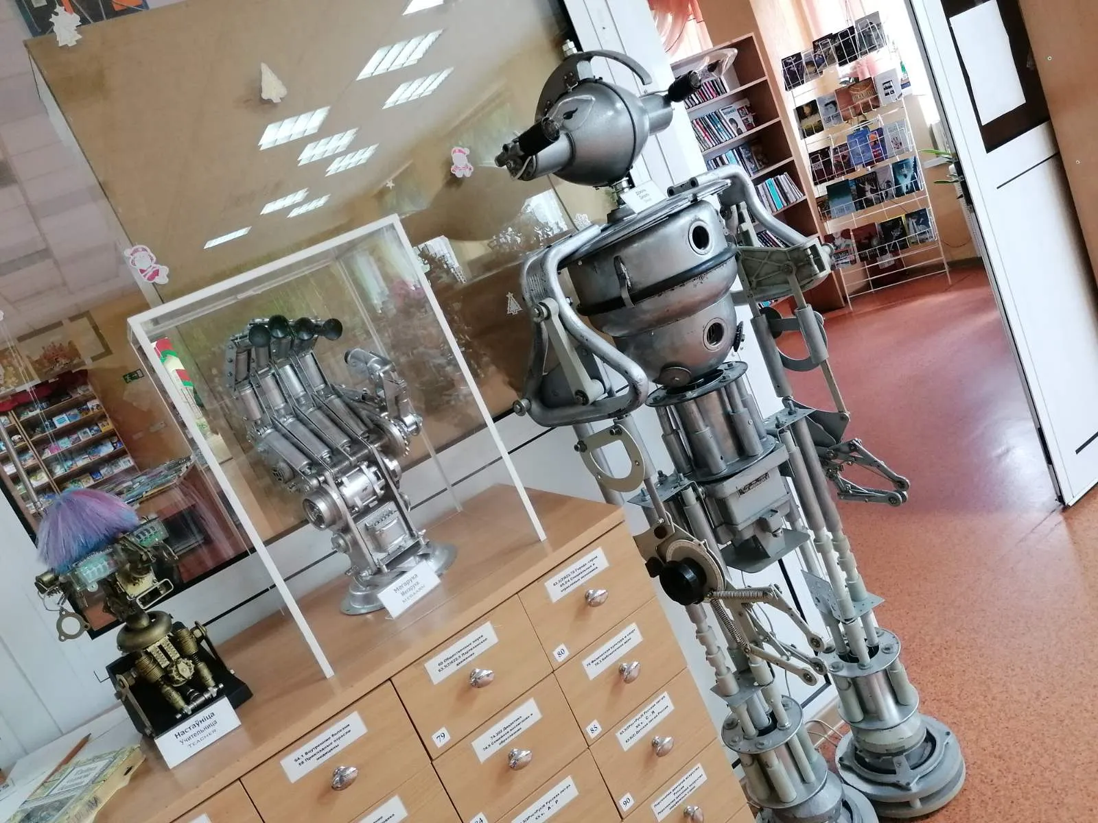 Роботы «Артур» и «Водолаз», «Механический человек на квадроцикле», «Учительница» и «Собака» – все модели собраны из отработанных бытовых приборов. Но, несмотря на это, многие из них удивляют своими возможностями. Самый высокий «АН-тонн» (рост – 1м 95см) может поворачивать голову в сторону двигающегося предмета. Гигант «Рудокоп» вращает клешнёй, светит глазами и мигает маячком. Ещё у него можно послушать биение механического сердца. С «Прометеем» подружатся только самые смелые. Знаете, почему? Этот экспонат смотрит на каждого посетителя его же лицом! Но это не пугает читателей библиотеки. Еще никто не прошел мимо такой уникальной выставки.
