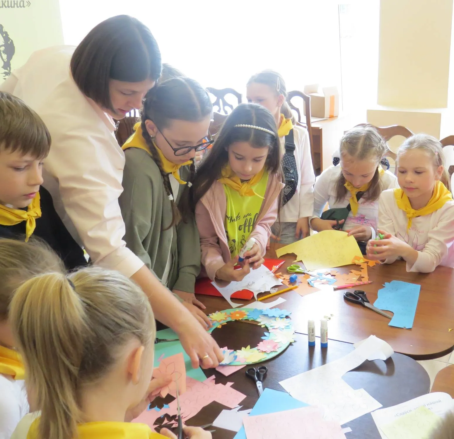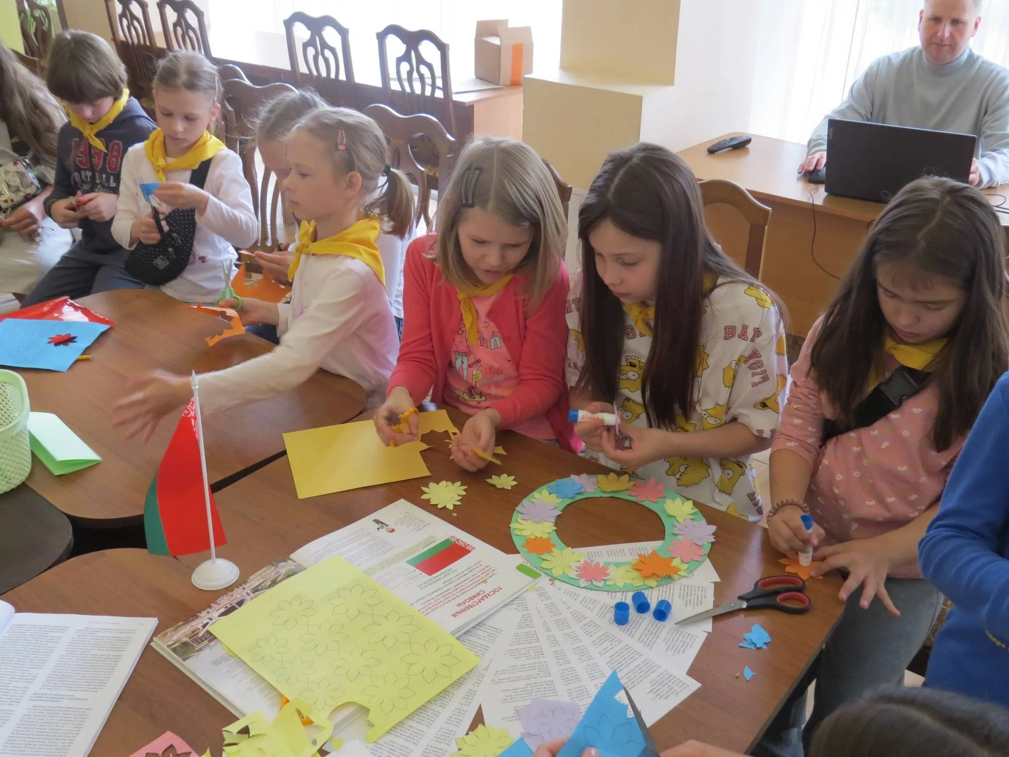 Вторая часть встречи – творческое задание, мастер-класс по изготовлению «Венка дружбы» – символа мира и взаимопонимания между народами наших стран. Все ребята с энтузиазмом включились в творческий процесс, приложили много стараний и усилий. Результат оправдал себя – «Венки дружбы» получились очень милыми.