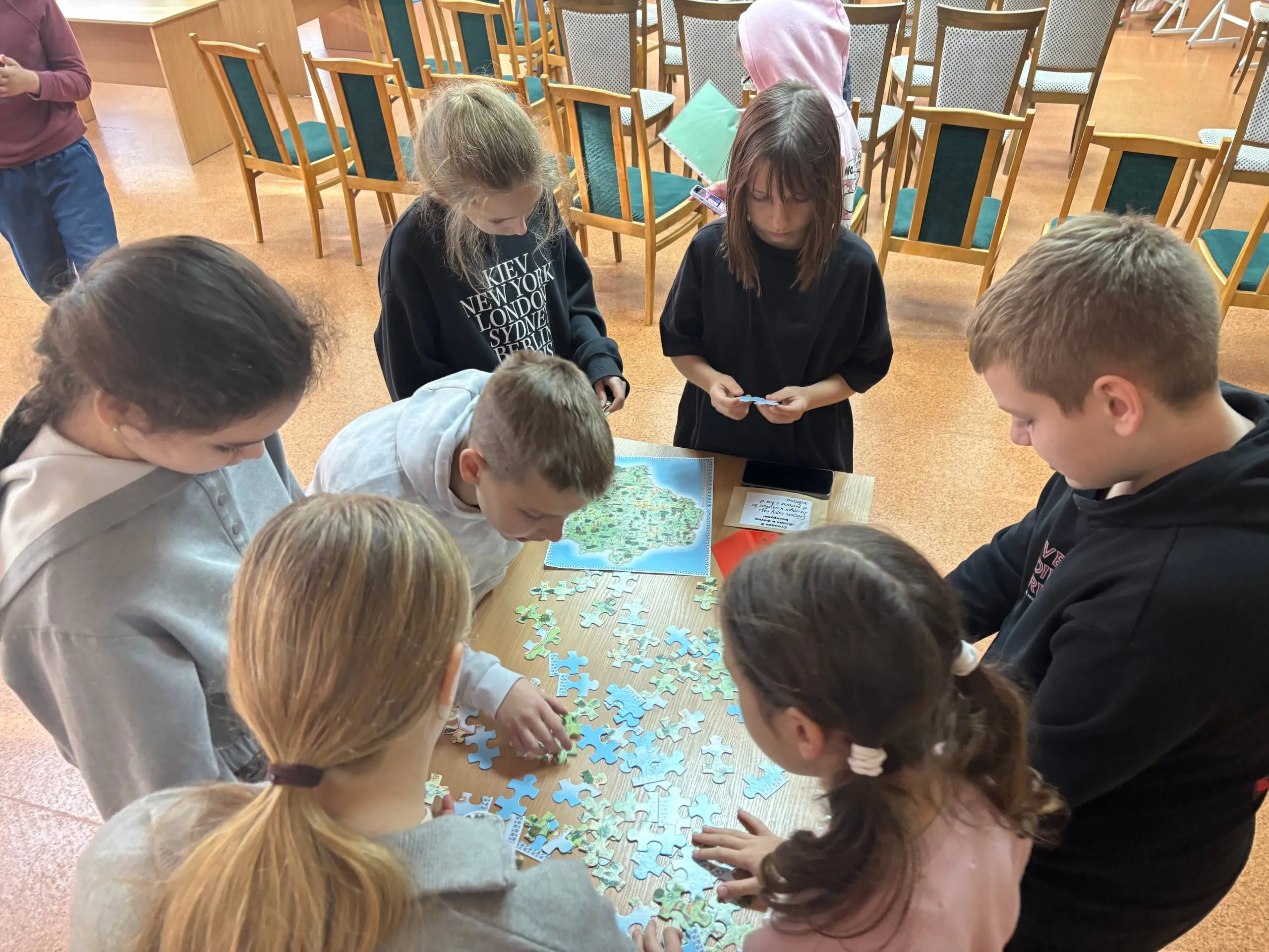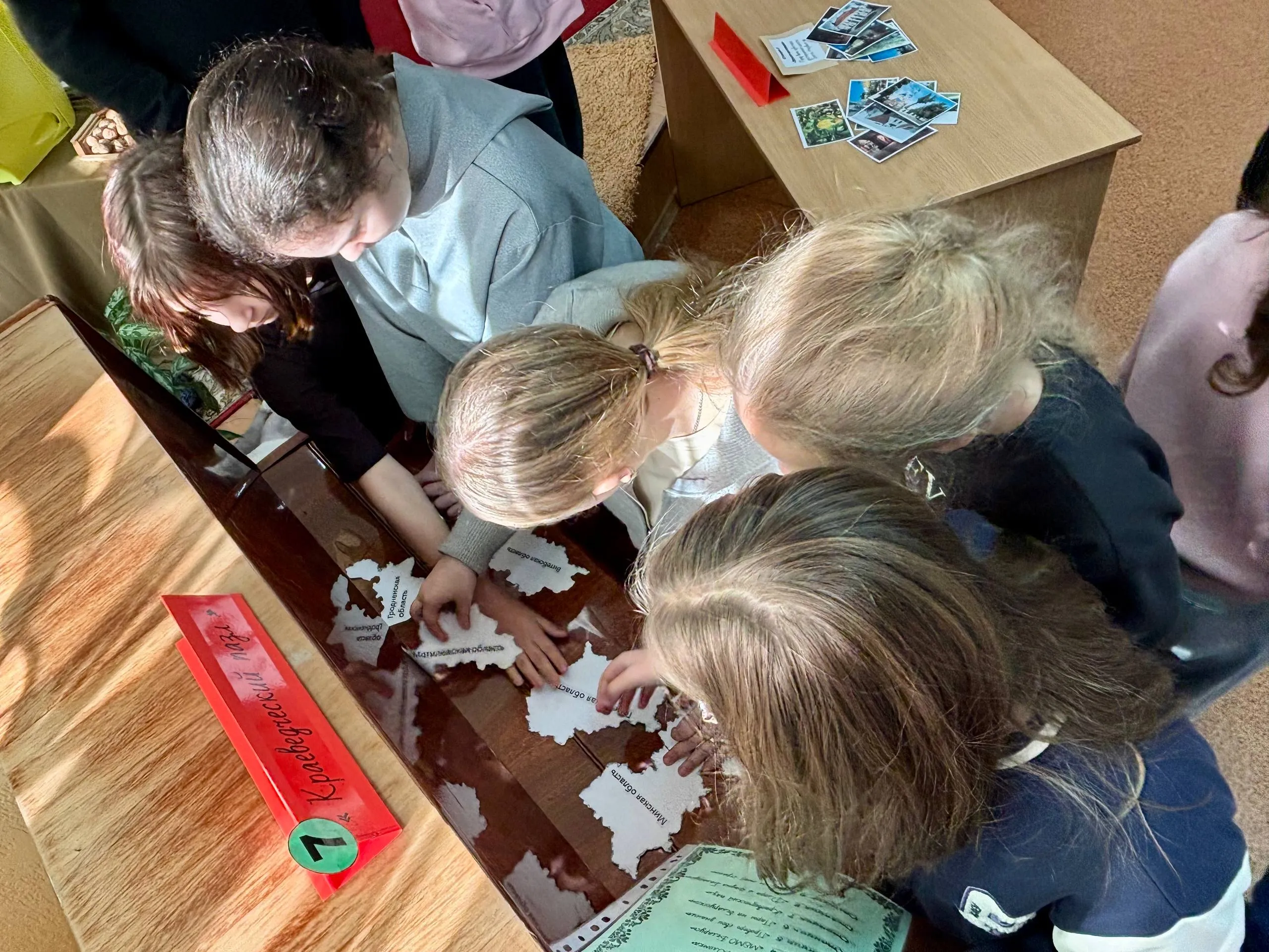 Особое внимание привлекла станция «Пары на беларусскай мове», где участники расширяли словарный запас, находя пары русским словам на белорусском языке. Далее дети составляли изображения достопримечательностей и природных объектов Беларуси на «Краеведческом пазле», а на станции «Флора и фауна Беларуси» узнавали о богатстве растительного и животного мира страны. В завершение ребята прикоснулись к национальным символам на станции «Символы моей страны».