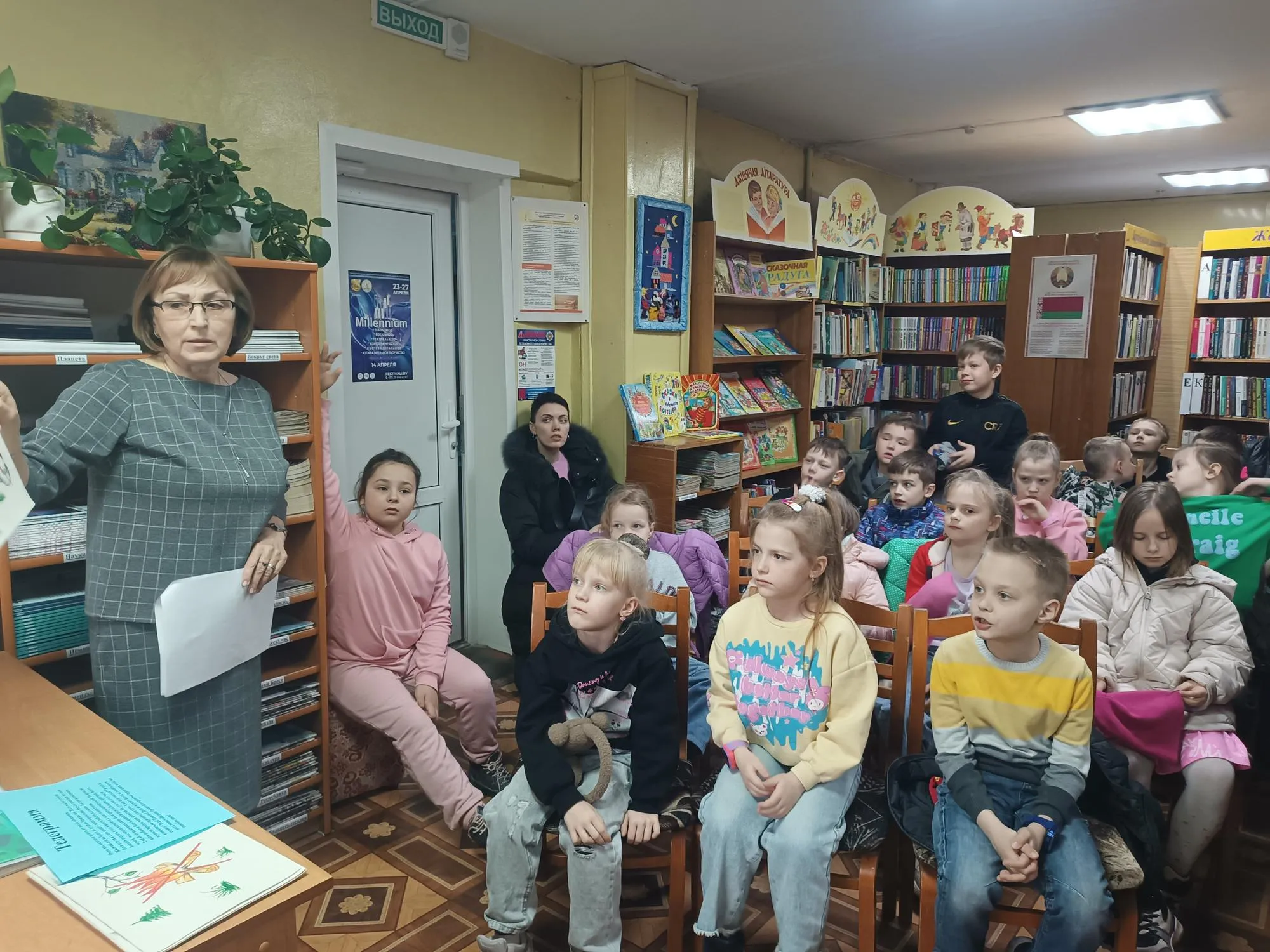 Мероприятие сопровождалось презентацией «Путешествие в весенний лес». С интересом ребята прислушивались к аудиозаписи звуков весеннего леса: пения птиц, журчания ручья, жужжания насекомых. Маленькие читатели внимательно слушали сведения о Красной книге РБ, о птице 2025 года – большом веретеннике.