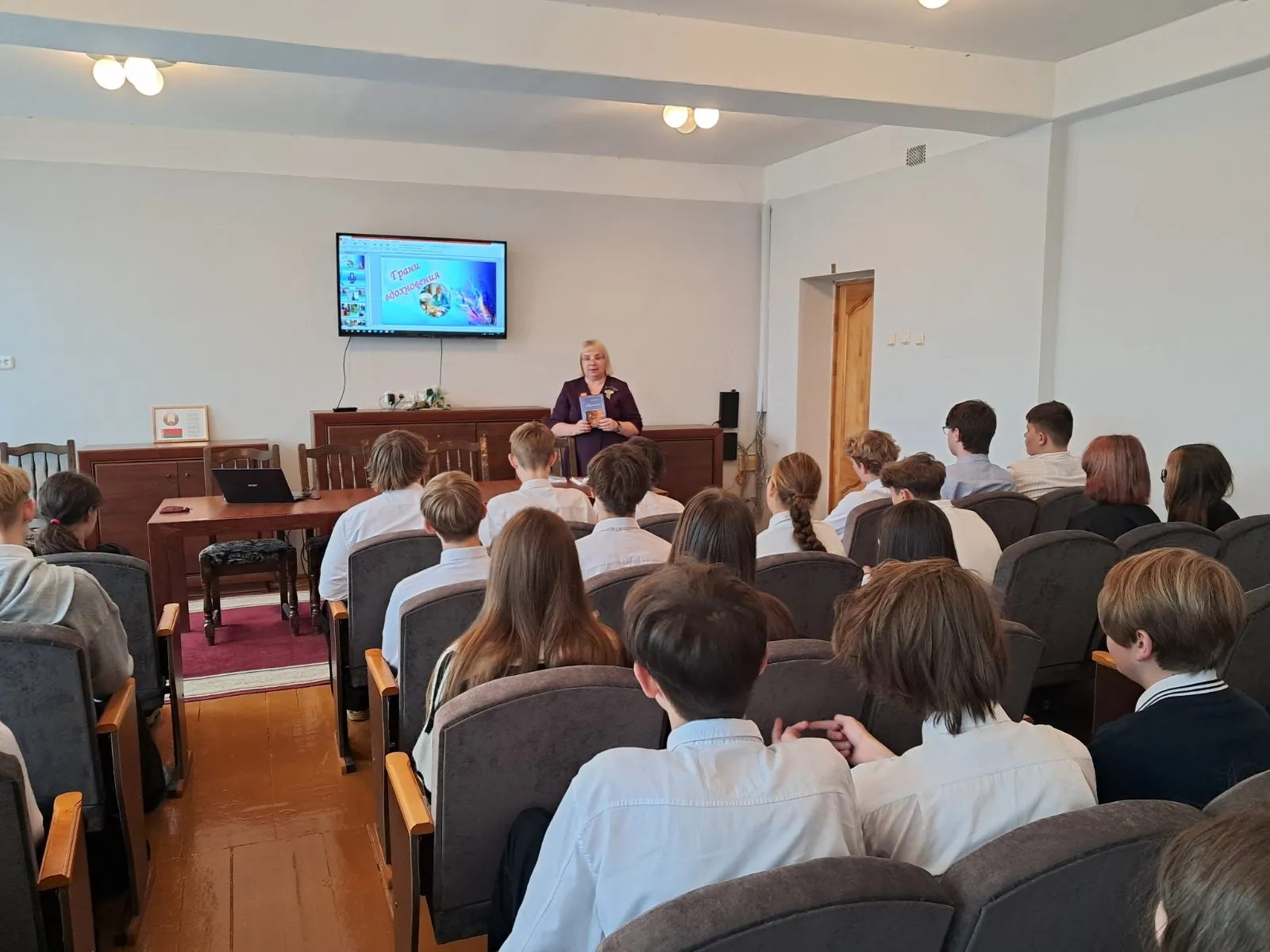 В ходе встречи писатель рассказала слушателям о своей биографии литератора, представила электронную презентацию о гранях своего творчества, познакомила со своими книгами «Мимолётности» и «Вероятности».