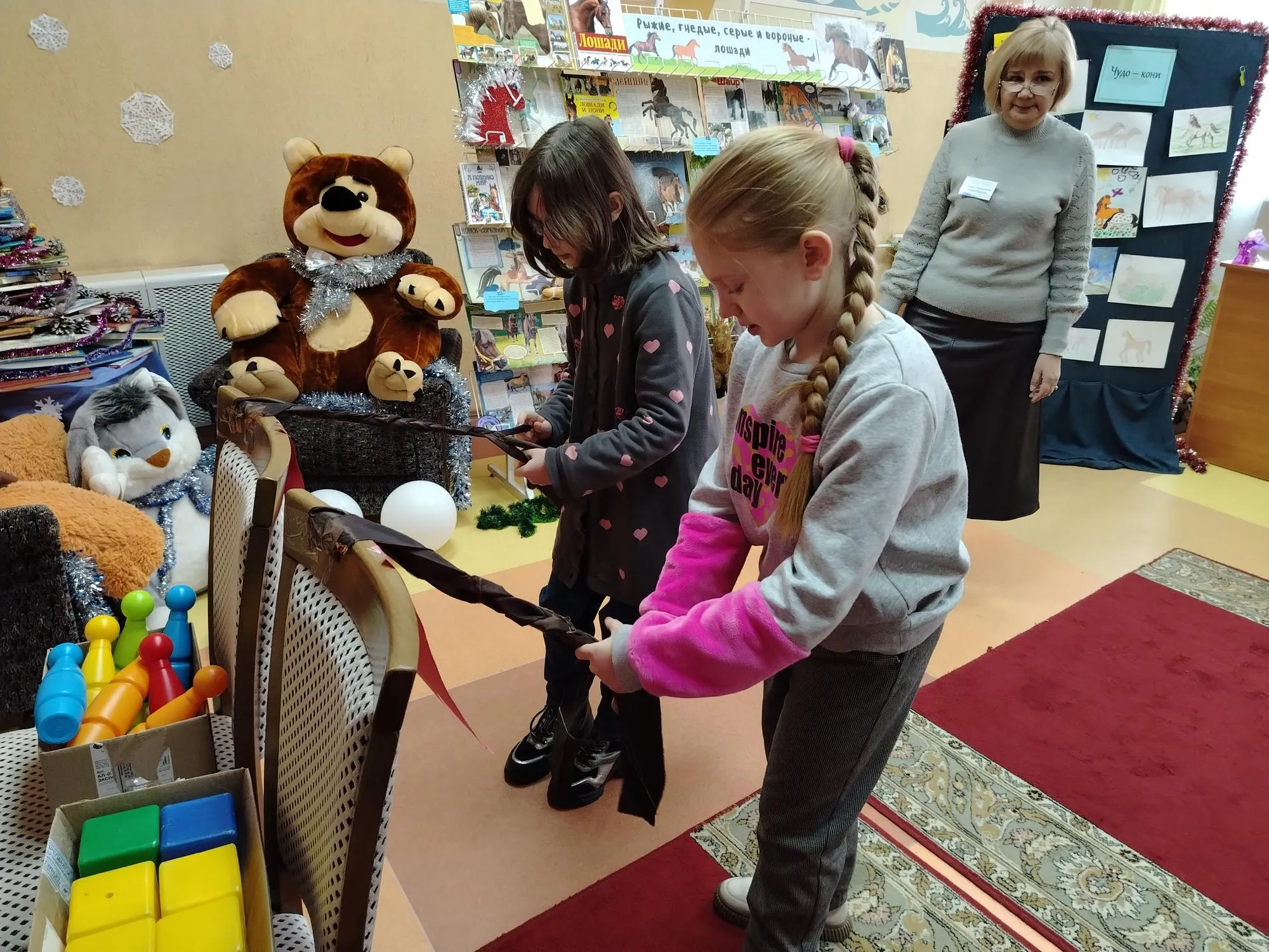 В ходе мероприятия мальчишки и девчонки вспоминали стихи о лошадях, слушали рассказ библиотекаря о таких поучительных и трогательных произведениях, как «Слепая лошадь» К. Ушинского и «Сказка про Зеленую лошадь» Ю. Коваля. А после знакомства с рассказом А. Чехова «Лошадиная фамилия» ребята устроили соревнование, придумывая как можно больше фамилий, связанных со словом «лошадь».