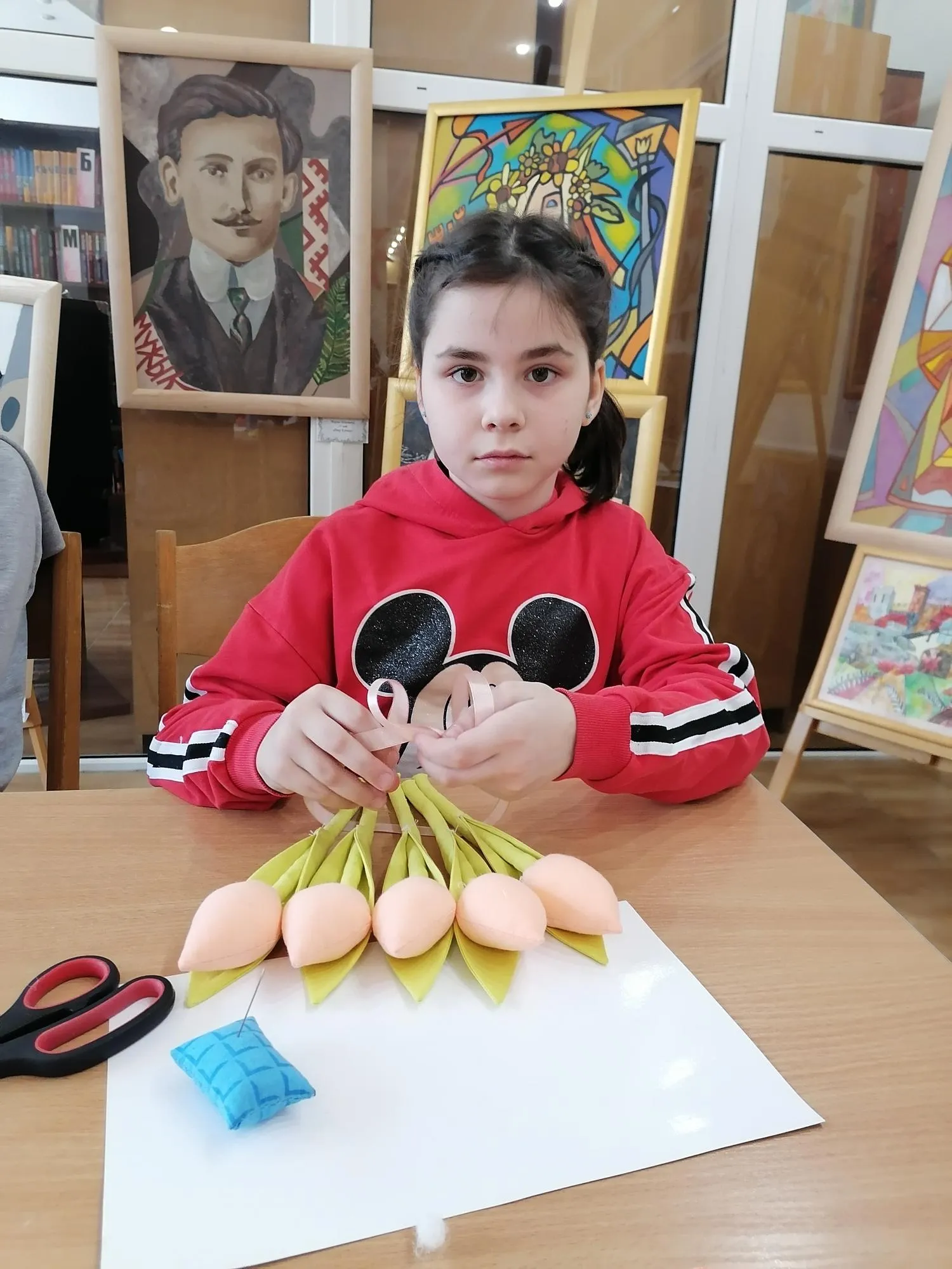 В начале марта в Арт-пространстве Центральной городской библиотеки им. А.С. Пушкина прошел мастер-класс «Красота для мамы». Участники «Творческой мастерской» создавали букеты из текстильных тюльпанов, чтобы подарить их своим мамам к 8 Марта.