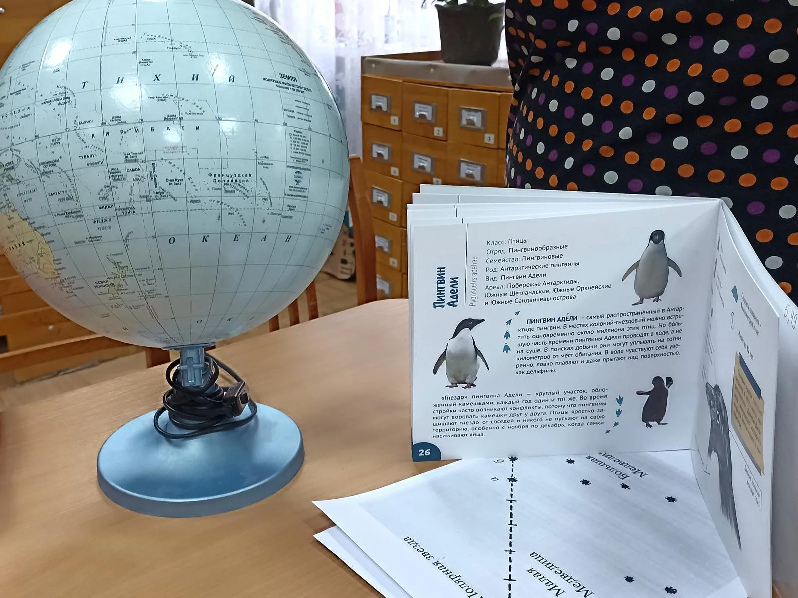 В центре внимания – пингвин. Необычная птица, живущая на Южном полюсе, в Антарктиде. Летать не умеет, зато прекрасно умеет плавать! Заметьте, одеты пингвины как настоящие джентльмены – в черный фрак и белую рубашку.