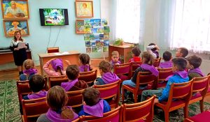 Дзеці адказвалі на пытанні, звязаныя з гісторыяй, культурай, традыцыямі, жывёльным і раслінным светам Беларусі, адгадвалі загадкі, разгадывалі крыжаванку “Беларусь”.