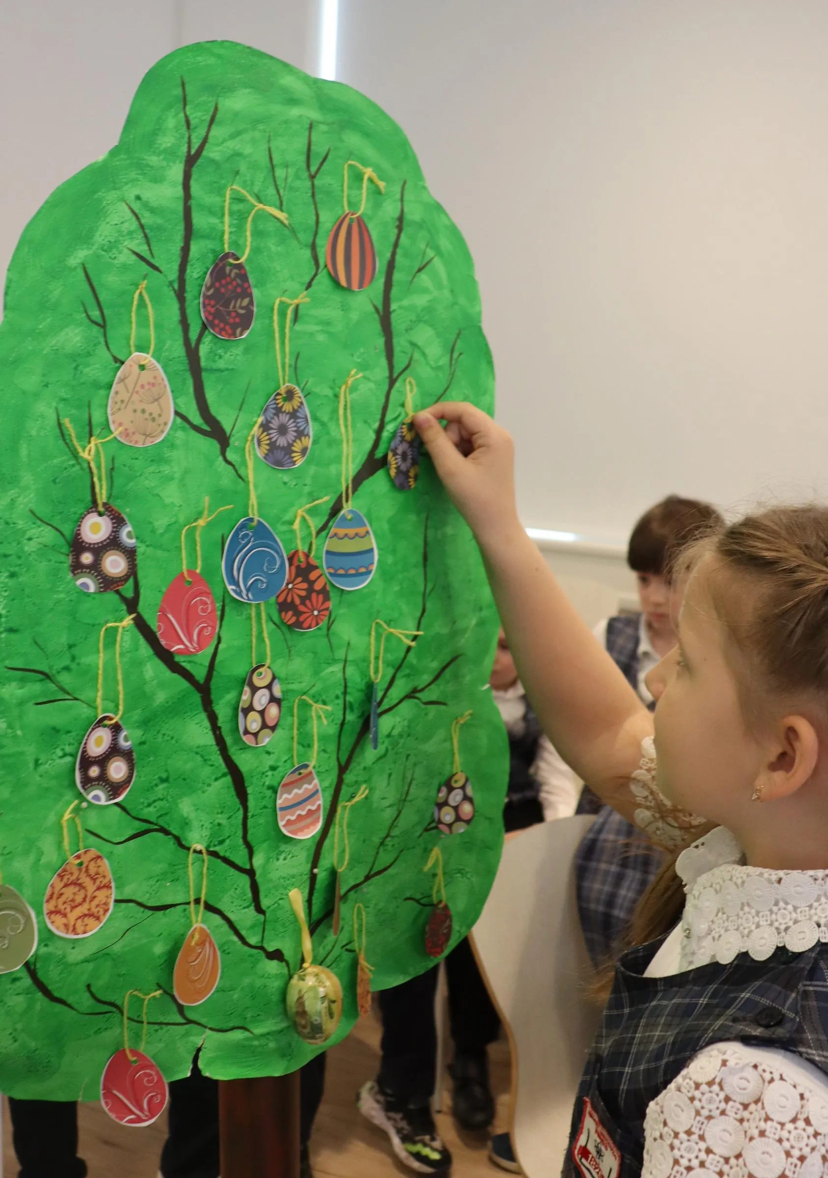 В конце встречи дети украсили «Пасхальное дерево» подвесками-яйцами, что добавило в атмосферу мероприятия больше праздника и радости.