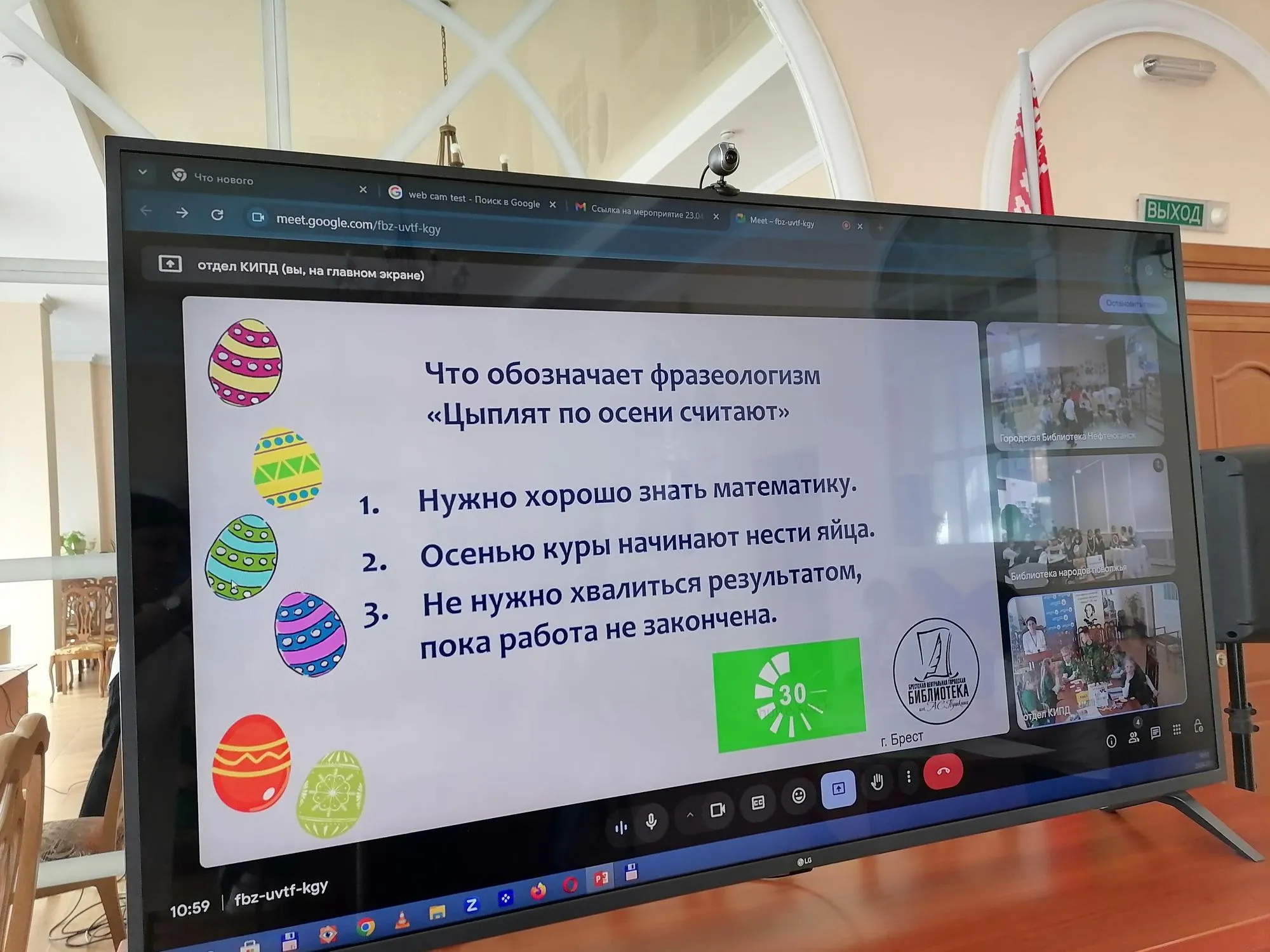 23 апреля в Центральной городской библиотеке им. А.С. Пушкина состоялась очередная международная онлайн-игра, посвященная празднику Светлой Пасхи. В игре приняли участие ребята из трех городов: Бреста, Нефтеюганска и Самары.