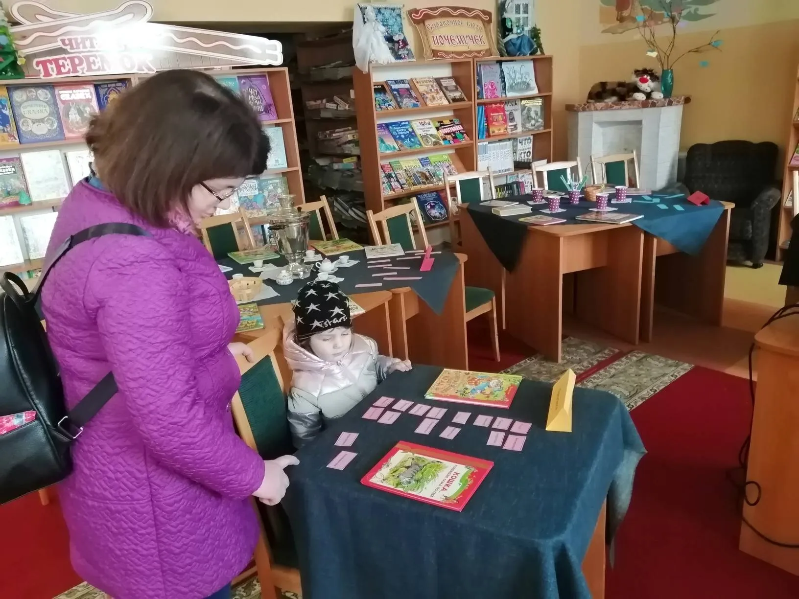 Юных читателей и их родителей пригласили сотрудники Городской детской библиотеки в мульткафе «Сказочная карусель». Здесь можно было не только полистать и почитать красочные книги со своими любимыми сказками, но и посмотреть снятые по ним мультфильмы. «Дюймовочка» Г.Х. Андерсена, «Золушка» Ш. Перро, «Кошкин дом» С. Маршака и многие другие подарили детям радость и хорошее настроение.