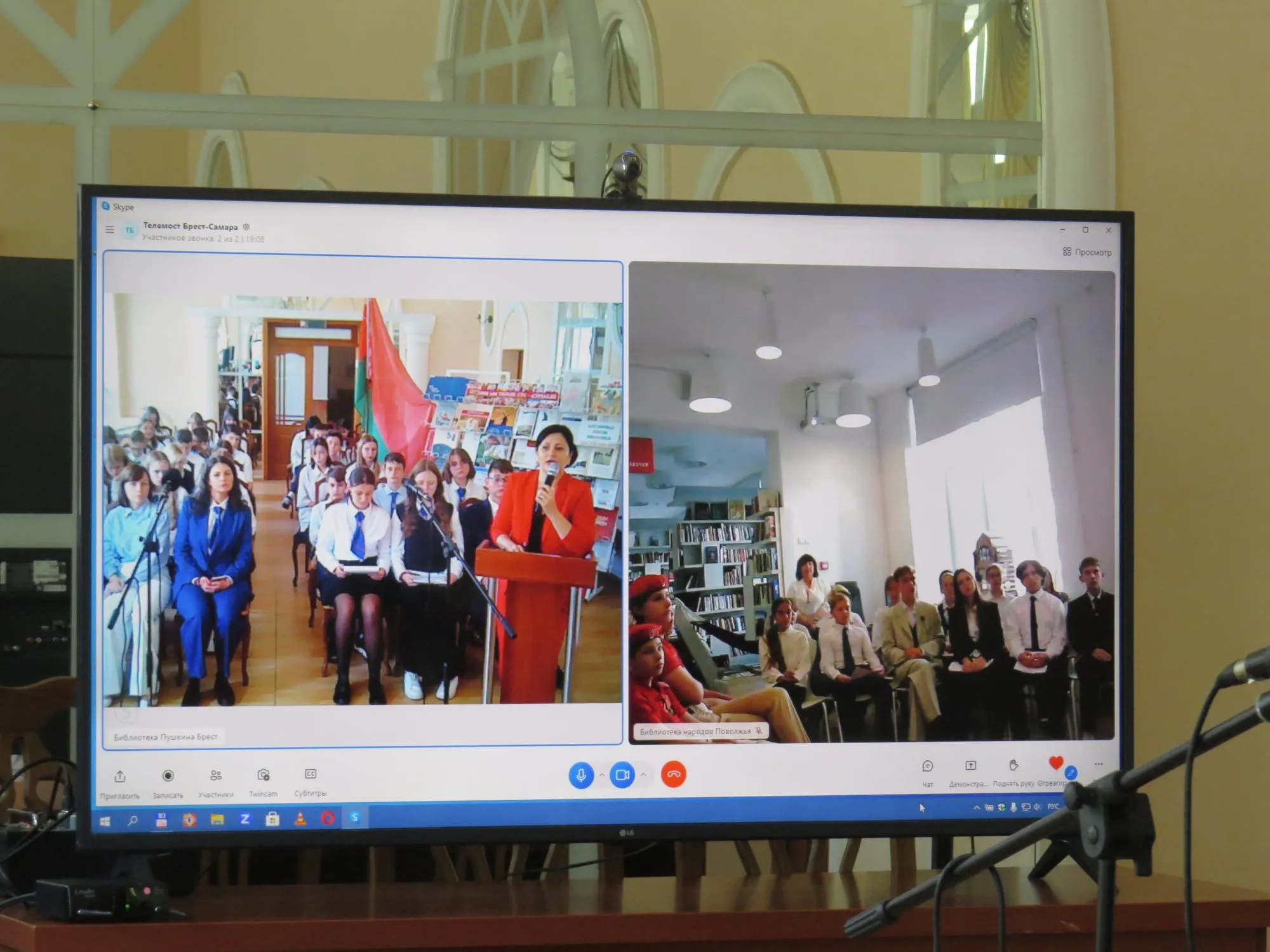 Чудесное настроение подарили всем присутствующим Братчук Елизавета, Павлючук Елизавета с композициями «Беларуска» и «Вочы синія» (Брест). А также видеоролик выступления детской вокальной студии «Fantasy Kids» (Самара). ГУК «Брестская центральная городская библиотека им. А.С. Пушкина» выражает благодарность МБУК г.о. Самара «Централизованная система детских библиотек» за интересный телемост с надеждой на дальнейшее сотрудничество.