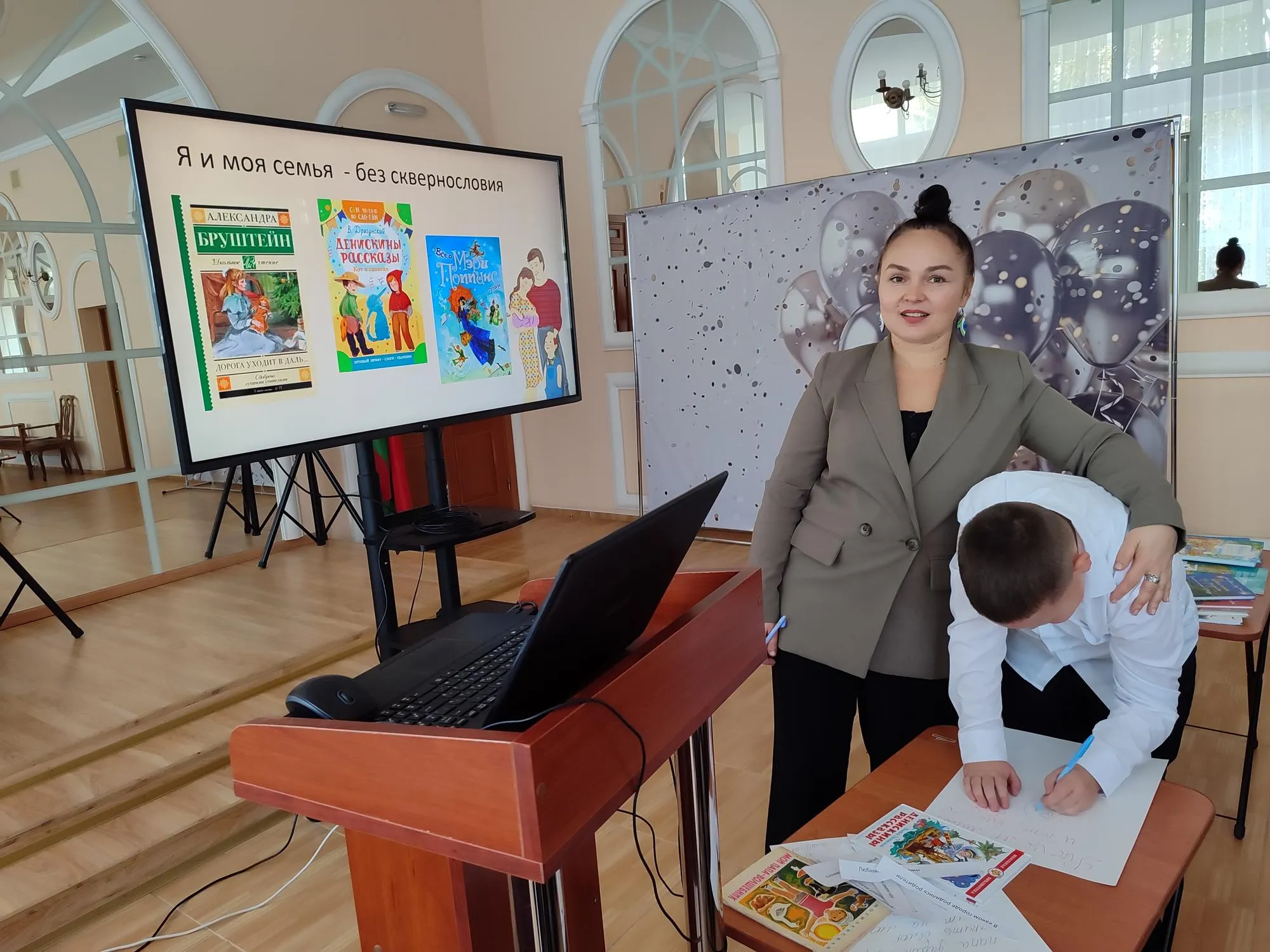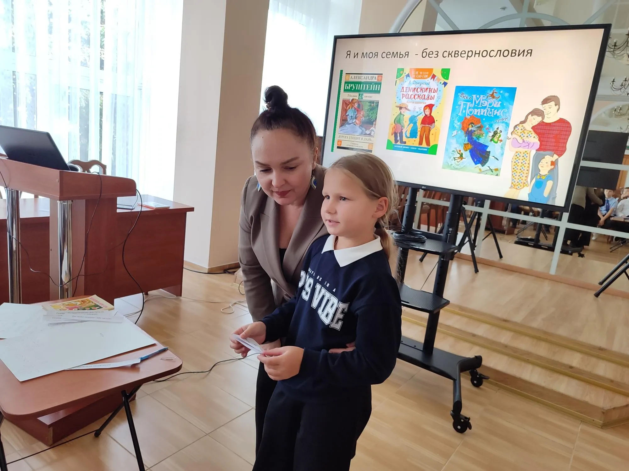 Так, 16 октября, заведующая отделом маркетинга и социокультурной деятельности Светлана Рябцева познакомила ребят из НШ № 6, а также СШ № 13 с литературой о семье и семейных ценностях. Содержание книг Павла Гушинца «Папа, расскажи про меня историю», Наринэ Абгарян «Манюня», Виктора Драгунского «Денискины рассказы» вызвало бурные обсуждения. После которых, к слову, школьникам было предложено принять участие в различных конкурсах. Здесь полету фантазии не было предела! И мам рисовали, и о волшебных качествах пап говорили, и даже стихи сочиняли!