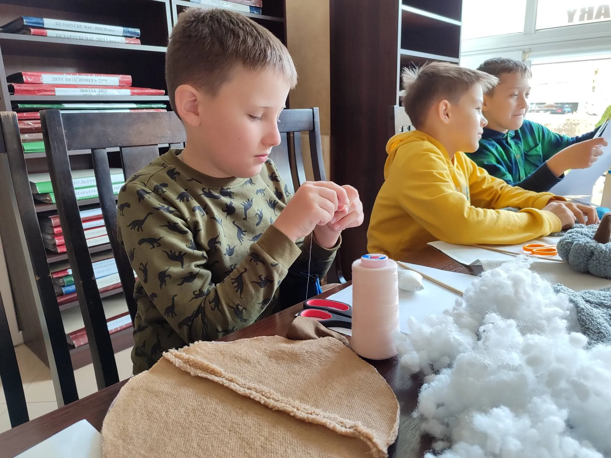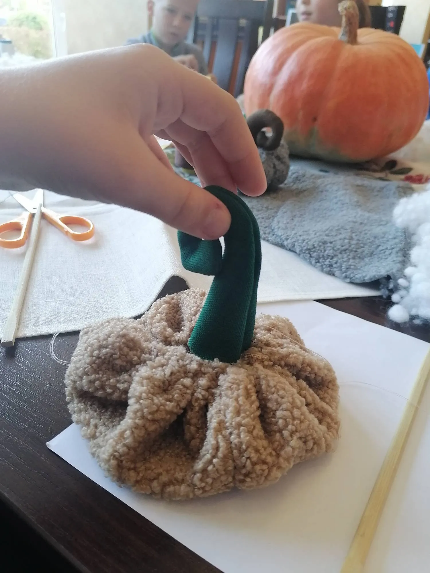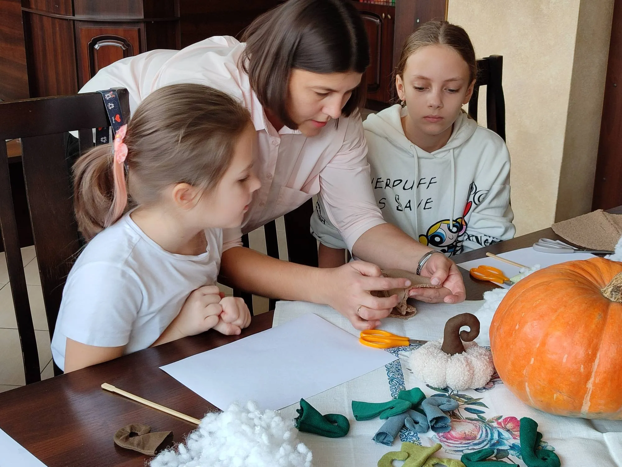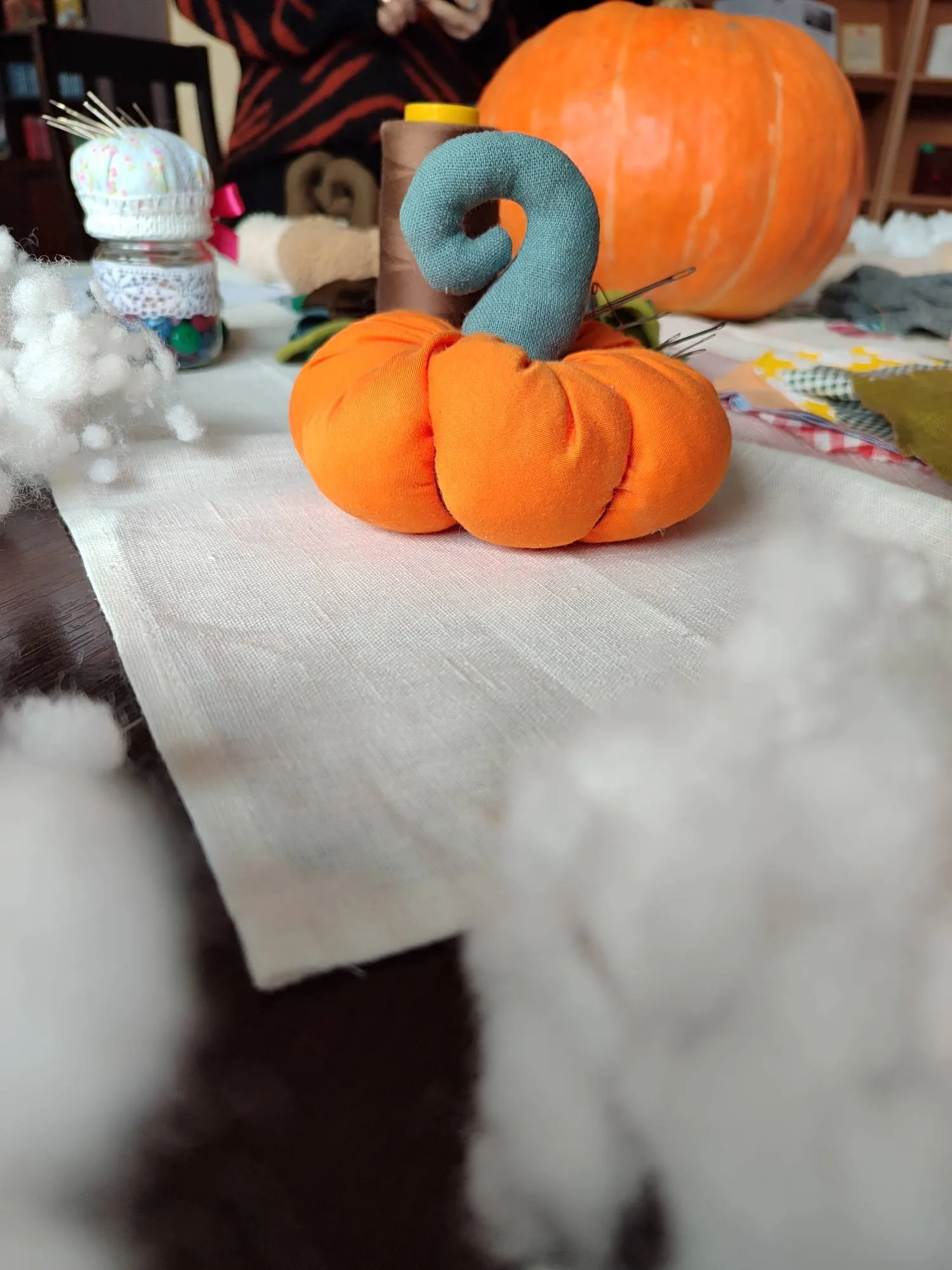 Ребята с удовольствием работали с мягкими и податливыми тканями, синтепоном, нитками и иголками. Они аккуратно и терпеливо шили тыквы-игольницы, а также с интересом загадывали загадки и вспоминали произведения, персонажами которых являлась тыква. Атмосфера на занятии творчеством была дружелюбной и «по-домашнему» теплой.