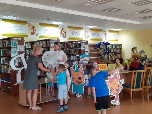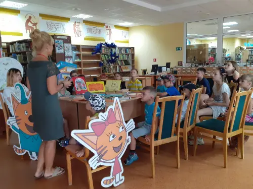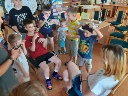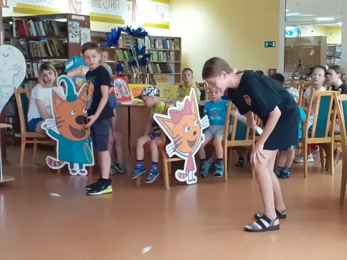 И ребята из клуба “Дабрыня” снова собрались в детской библиотеке на литературно-игровой калейдоскоп «Почитаем, поиграем, отдохнём – лето с пользой проведём!». За основу программы были взяты книги с выставки «Весёлые игры на страницах книг», в которых присутствовало то или иное описание детской игры. Гляделки, пустяки, дуй-передуй и другие великие игры, правилам которых учат герои Крапивина, Милна, Линдгрен и др. Заряд хорошего летнего настроения и бодрости получили они в подвижных играх, конкурсах и состязаниях.