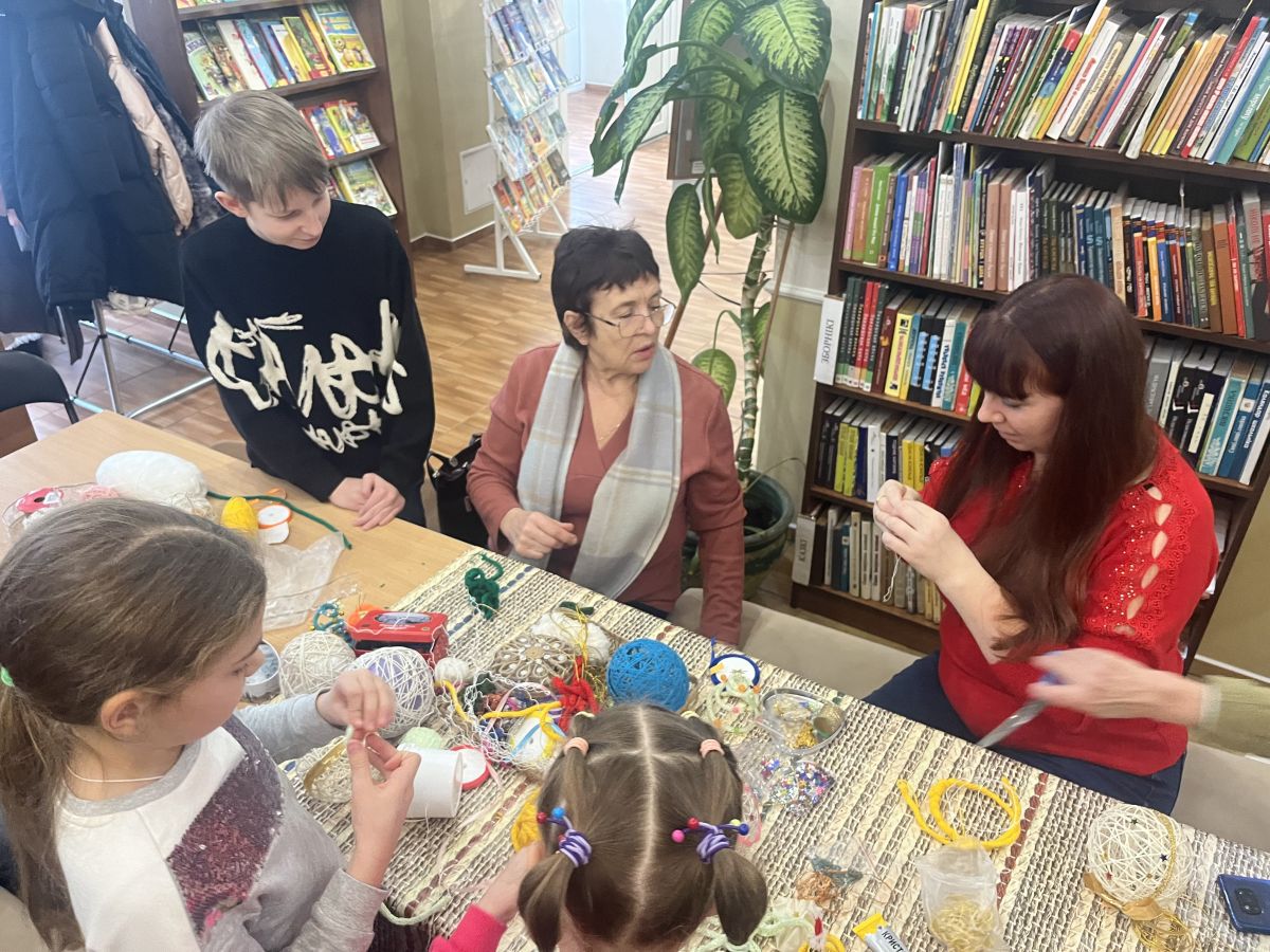 Команда родителей и детей собралась в предновогодние дни в Центральной городской библиотеке им А.С. Пушкина на мастер-класс «Новогодний сувенир». Участники мастер-класса окунулись в атмосферу творчества и фантазии. Все работы получились разные, каждое изделие – настоящий неповторимый новогодний шедевр.