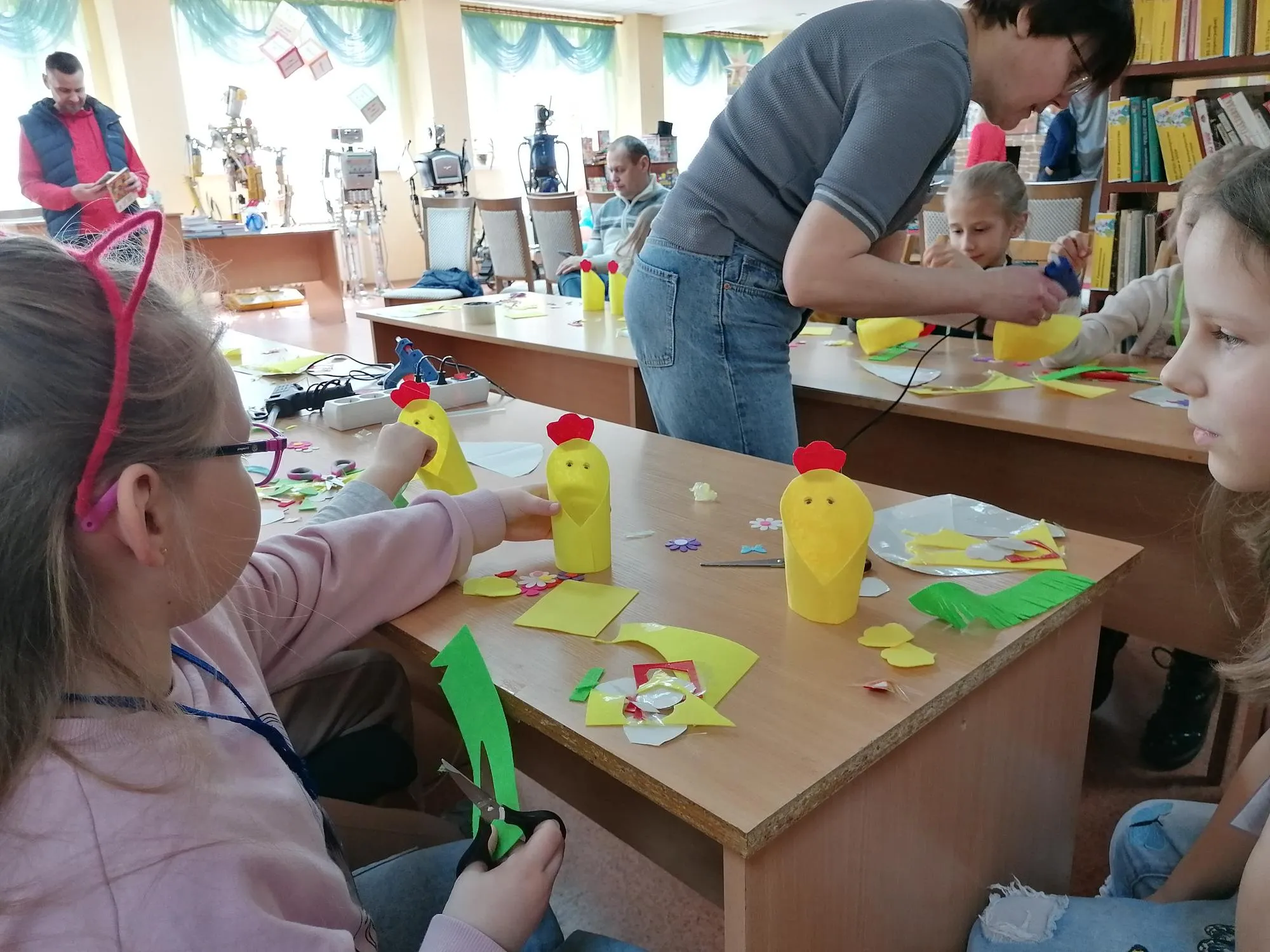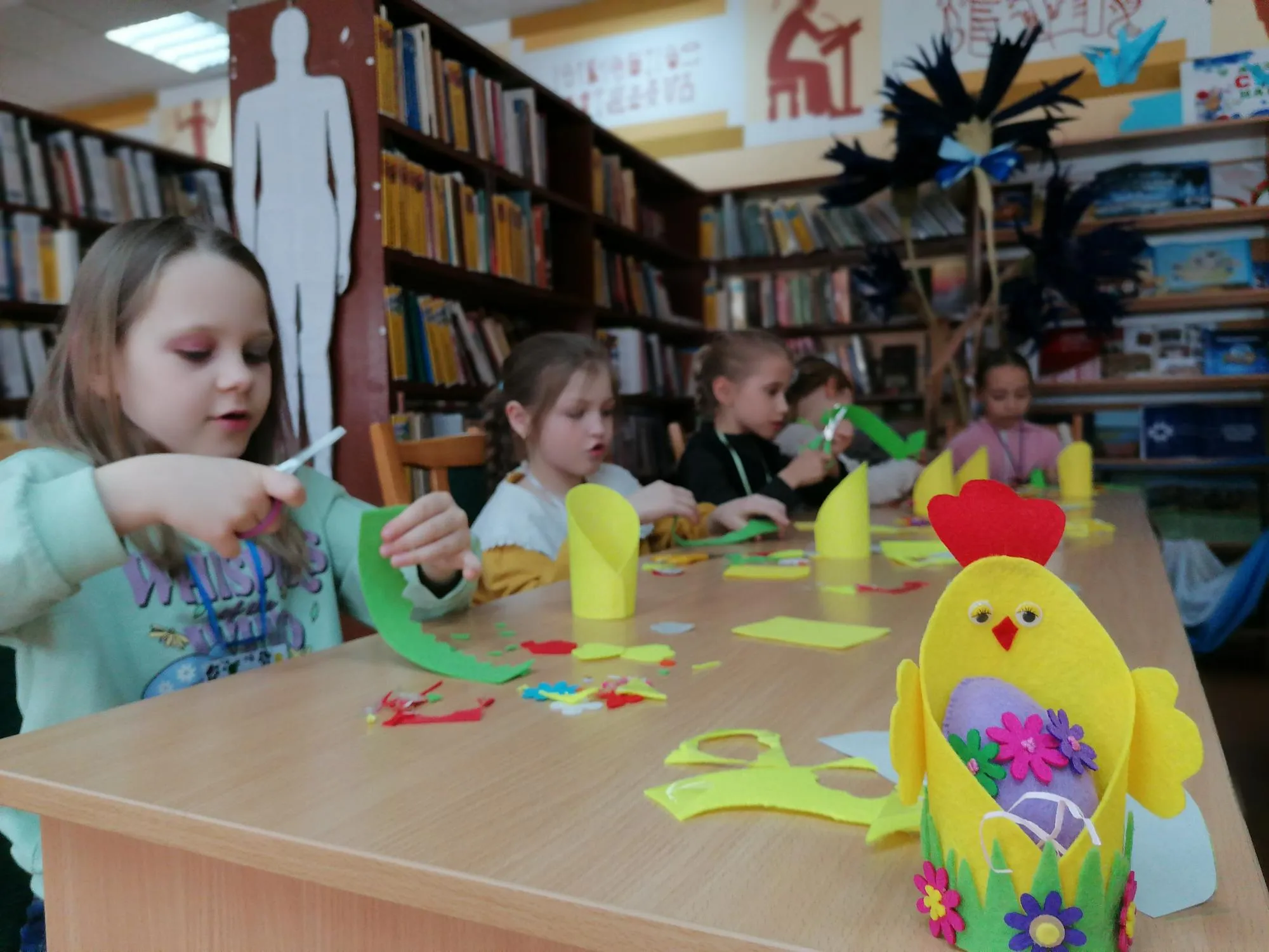 В Городской детской библиотеке состоялась очередная встреча юных «СоЧитаек». В этот раз мальчишки и девчонки, а также их родители встретились в преддверии Светлой Пасхи, чтобы почитать Графу интересные истории об этом празднике, а также под руководством опытного и творческого библиотекаря сделать своими руками необычную тематическую поделку.