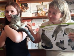 Узнали, какие бывают породы кошек, как за ними ухаживать, чем кормить. Поиграли с гостем встречи, кошкой Милкой, которая была очень ласковой, спокойной и дружелюбной.