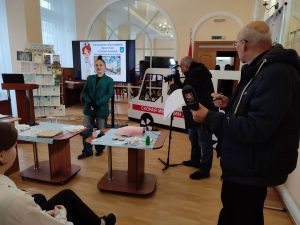 12 ноября в центральной городской библиотеке прошла вторая встреча в рамках проекта «Кем быть?». Учащиеся девятых классов ГУО «Средняя школа №15» и ГУО «Средняя школа №7» знакомились с профессией медсестра и фельдшер-акушер. На встречу к ребятам пришли учащиеся УО «Брестский государственный медицинский колледж». Была подготовлена подробная информация о вступительной компании: документы для поступления, проходные баллы, срок обучения на разные специальности. Подробно освещена жизнь колледжа, учебная и досуговая база. Учащиеся колледжа сделали акцент на перспективах медицинских специальностях и её престижа. Далее все присутствующие могли попробовать практически окунуться в мир профессии, учились делать уколы, перевязки, открывать ампулы.