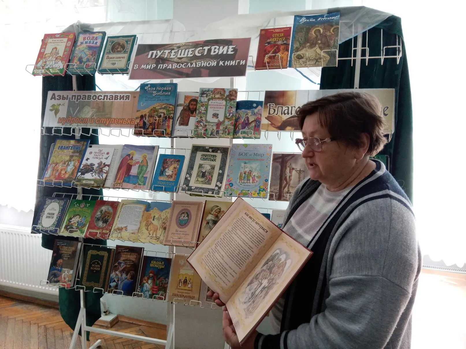 Дополнением к мероприятию стала книжная выставка «Путешествие в мир православной книги». Елена Аркадьевна провела для своих внимательных слушателей обзор выставки.